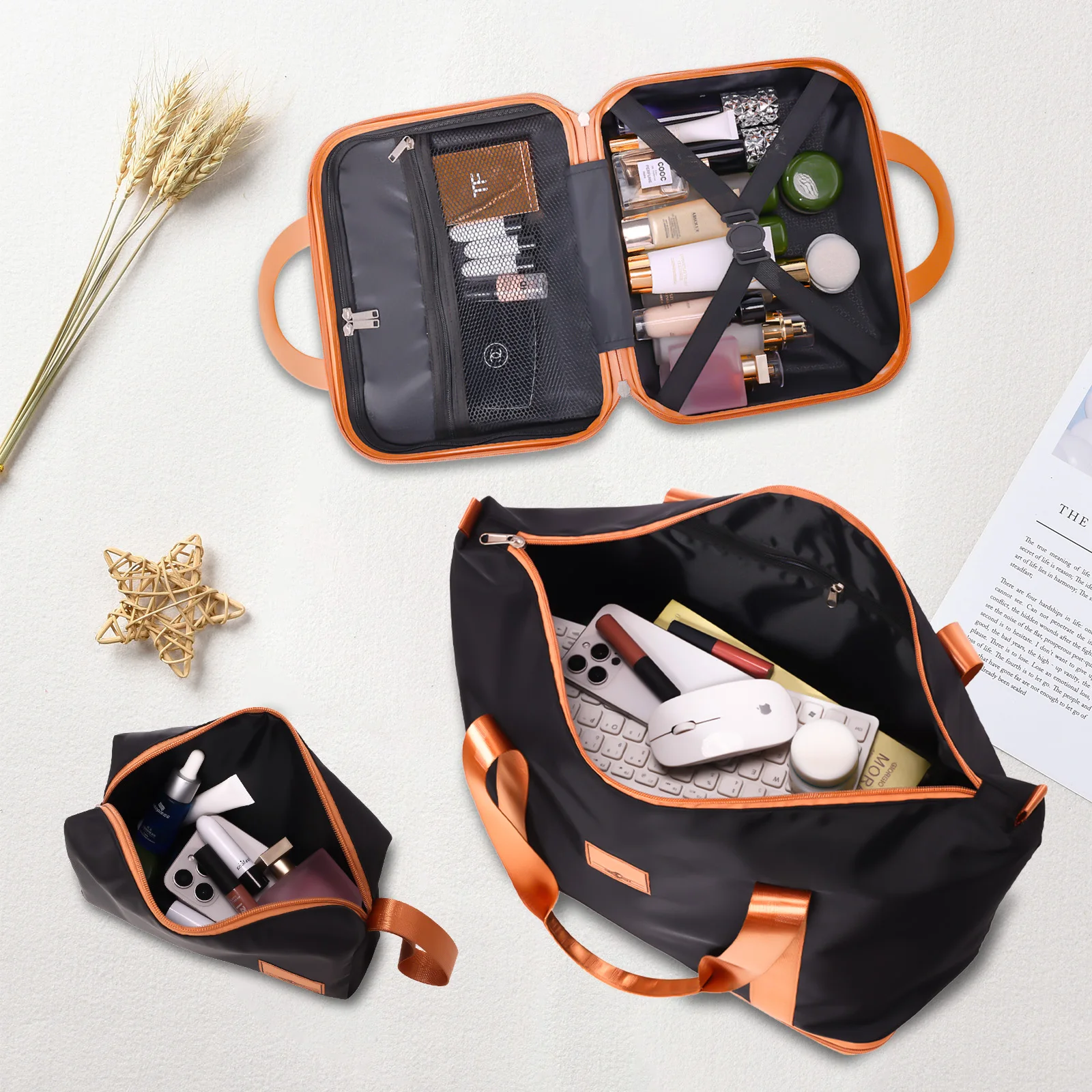 【4 Piece Luggage Sets】Our luggage set features 20-inch suitcase, 13-inch cosmetic case, portable travel bag and toiletry bag - perfect from weekend trips to family vacations.