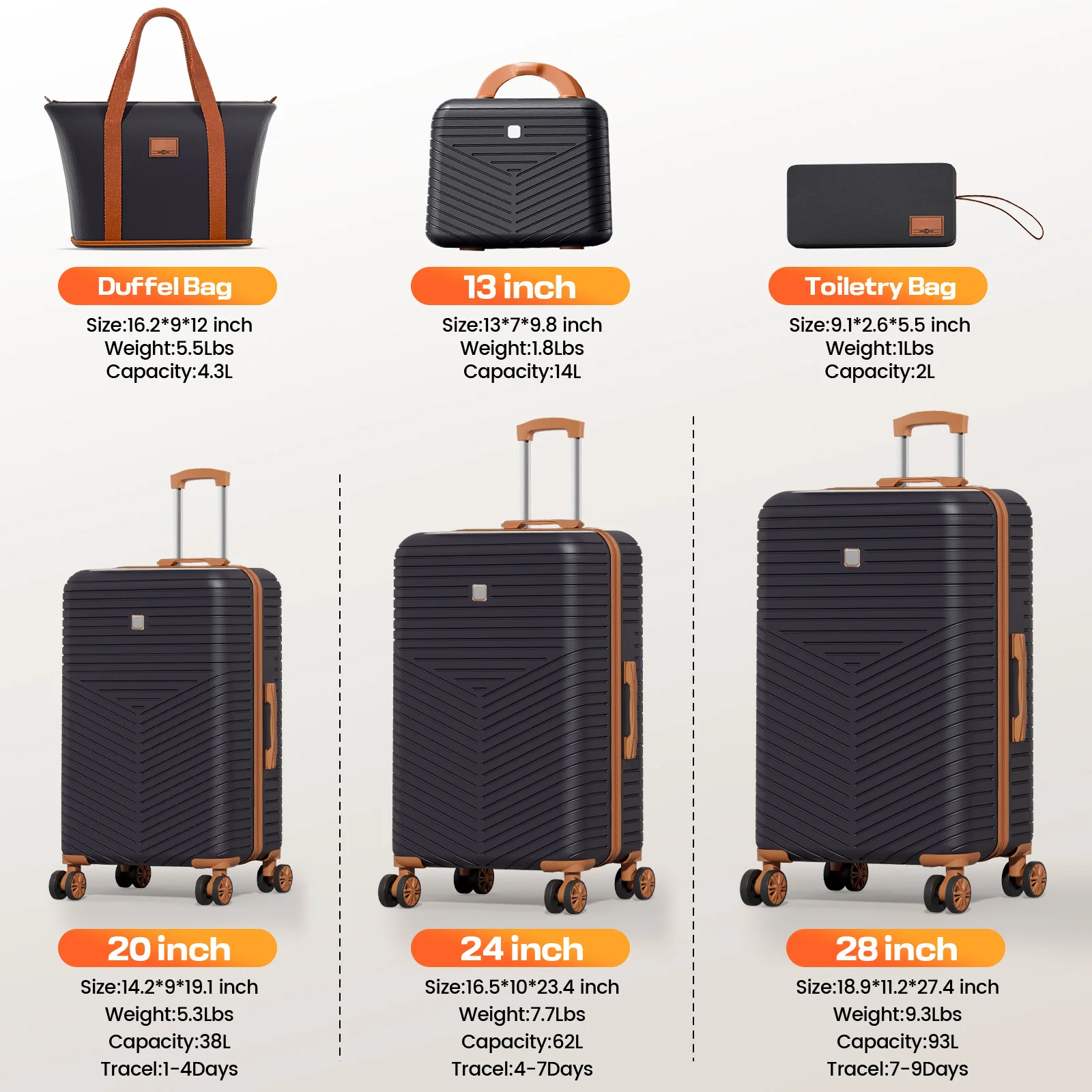 【6 Piece Luggage Sets】Our luggage set features 20/24/28-inch suitcase, 13-inch cosmetic case, portable travel bag and toiletry bag - perfect from weekend trips to family vacations.