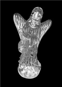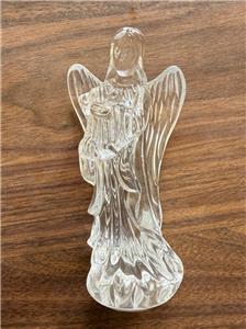 SIGNED WATERFORD CRYSTAL ANGEL w/ HARP 6" TALL FIGURINE NATIVITY COLLECTION. NO BOX. FLEA BITE ON HER WING. HARD TO SEE. OTHERWISE EXCELLENT CONDITION.