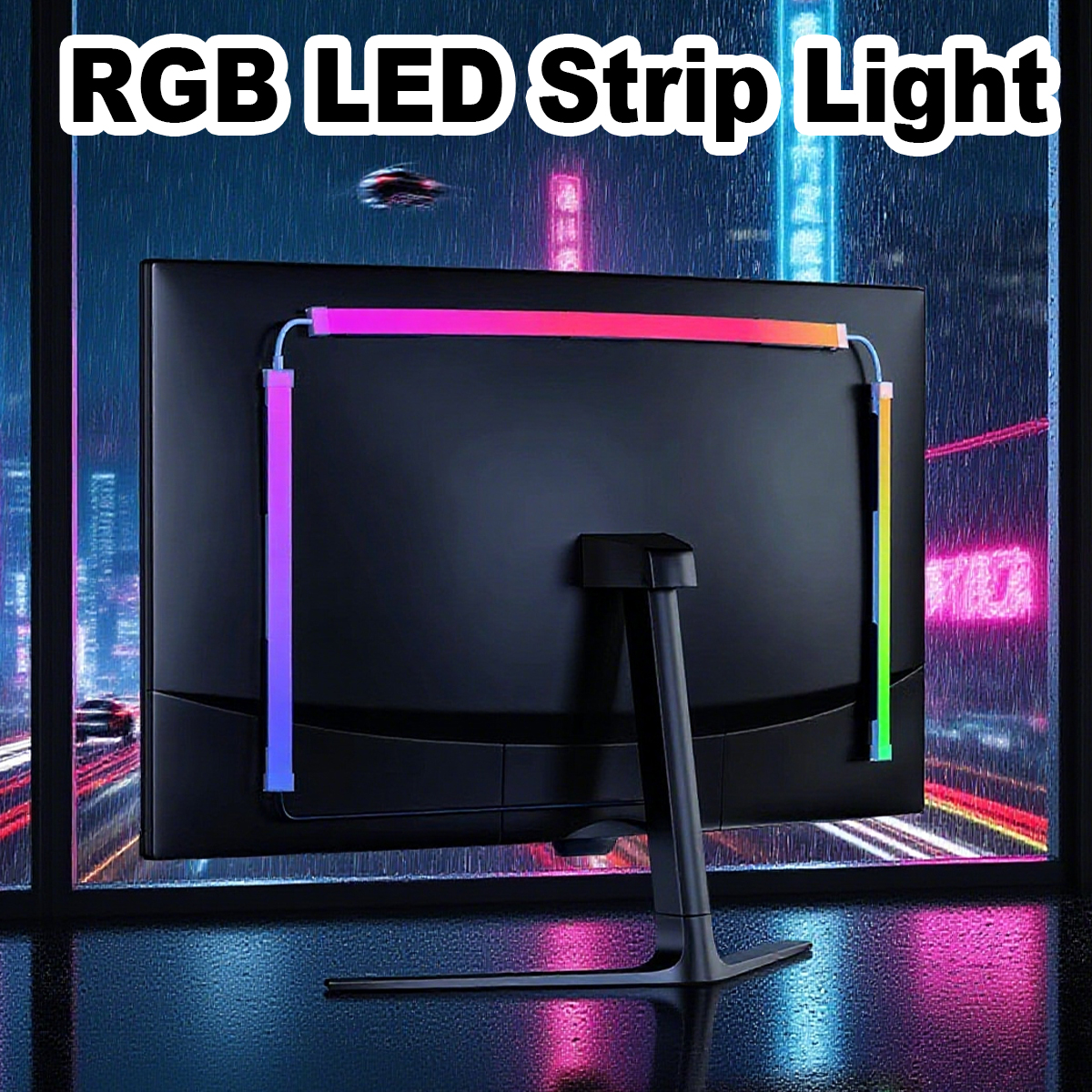 Fits Multiple Monitors – Flexible LED strip for 24"/27"/32"/34" screens.