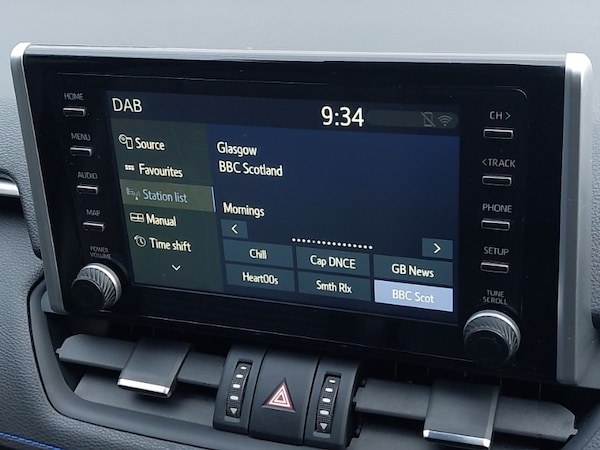 8"" Multimedia display touch screen, DAB audio, Toyota touch media system, 6 speakers, 7"" colour TFT display, Bluetooth system, Touch 2 Go navigation system, Voice control system, Rear parking camera, Rear parking sensors, Power boot opening and closing, ECO-driving indicator, Adaptive cruise control with lane trace assist, Dual zone automatic air conditioning, Heated driver and front passenger seats, Light blue ambient lighting on front cupholders and open tray, Power height-adjustable sliding reclining and lumbar support for driver seat, Parking pack - Rav4, Smart entry + Smart start