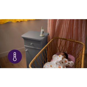 Mit Alarmen bei Temperaturüber- und -unterschreitungen trägt das integrierte Raumthermometer dazu bei, dass sich dein Nachwuchs immer pudelwohl fühlt. Genau das richtige Maß an Behaglichkeit für ein perfektes Nickerchen.