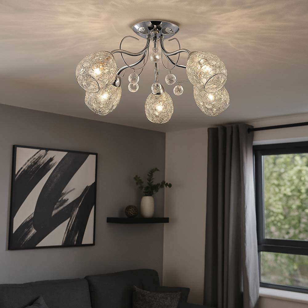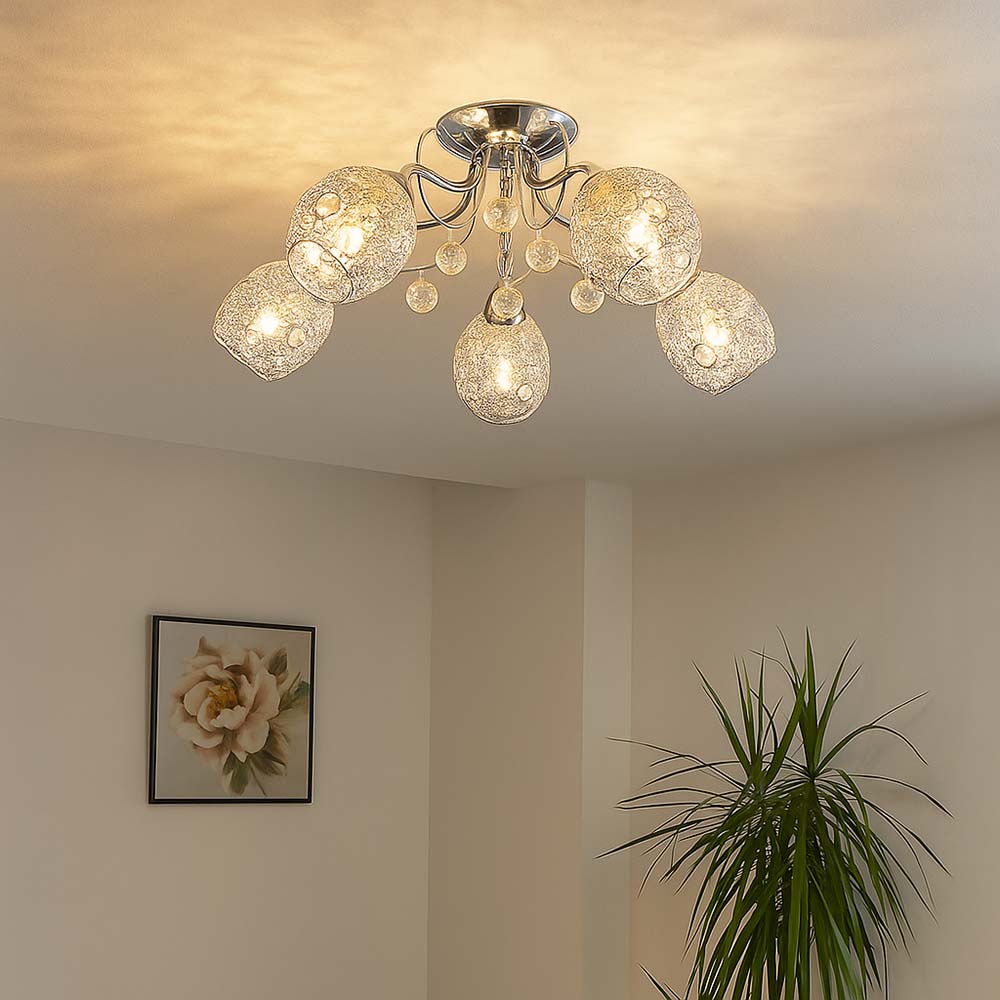 Les cinq boules en verre conçues sur le plan artistique font de cette lampe de plafond un porte-œil absolu. Cela rend ce bijou si vous souhaitez mettre à niveau avec goût votre espace de vie.