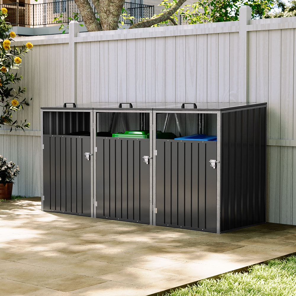 Triple wheelie bin store hold 3pcs 240 litre bins