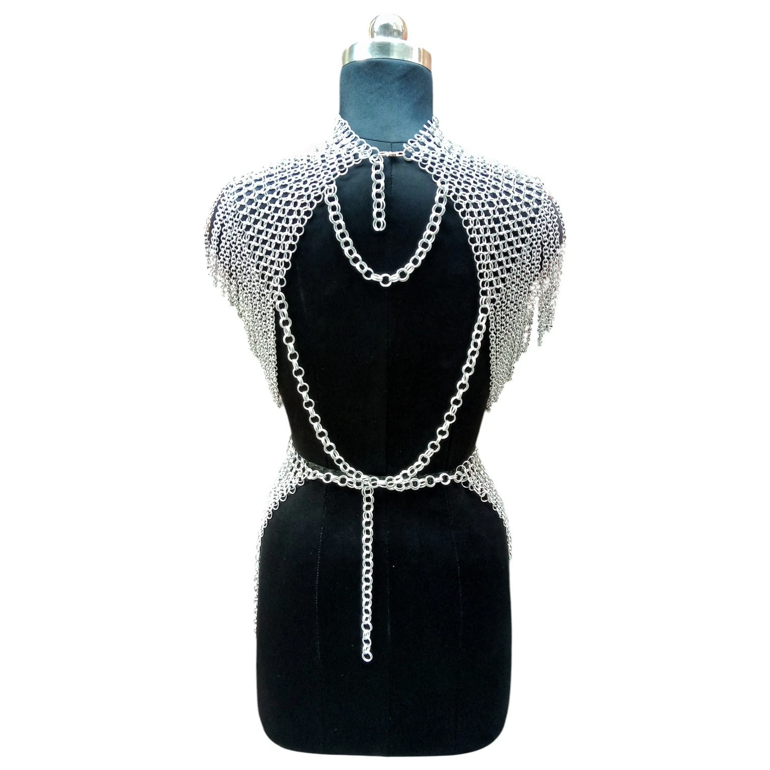Made using lightweight chainmail for women with 9mm butted chainmail rings and a bright silver chainmail costume finish for comfort and style.