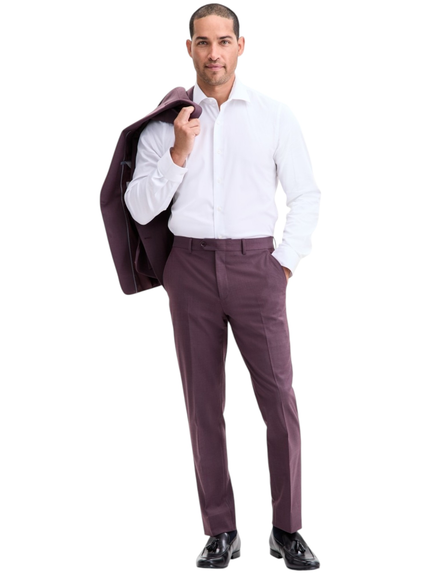 Fashion a clean and modern look in comfort with the slim-tailoring, solid design, and soft wool-blend finish of these suit separate pants by Bar Iii.
