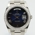 The blue ombré dial fades beautifully from vibrant blue at the center to deeper tones at the edges, accented by elegant Roman numerals and polished hands. The diamond bezel adds refined luxury without overpowering the classic Day-Date design.