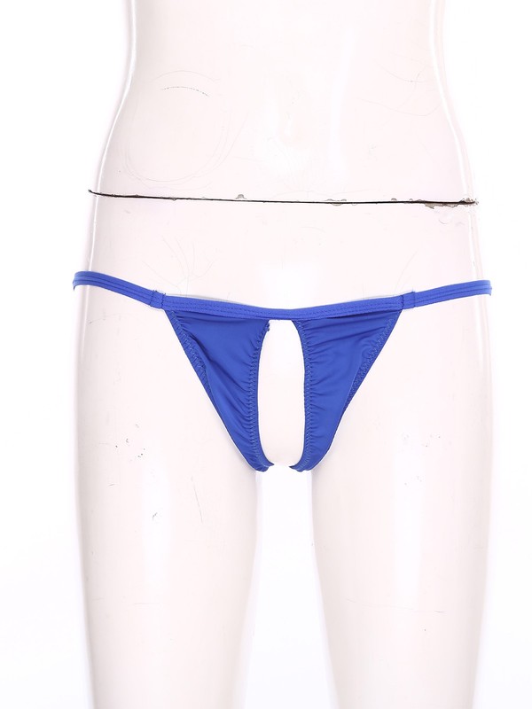 Front with see-through lace design, open butt and minimal coverage.