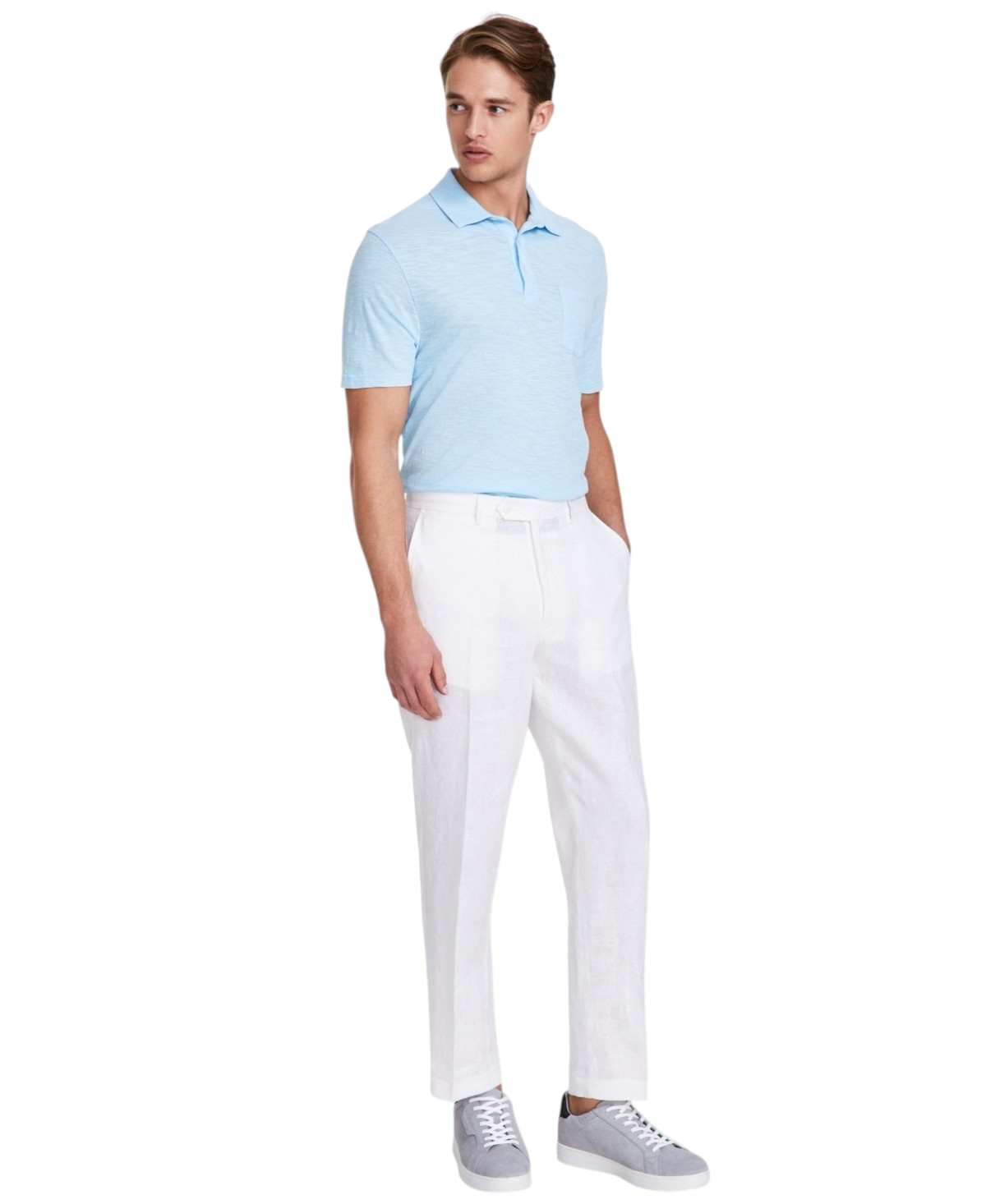 Classic deep-tone blue combines with breathable linen design to give you these airy, elegant modern-fit dress pants from Nautica.
