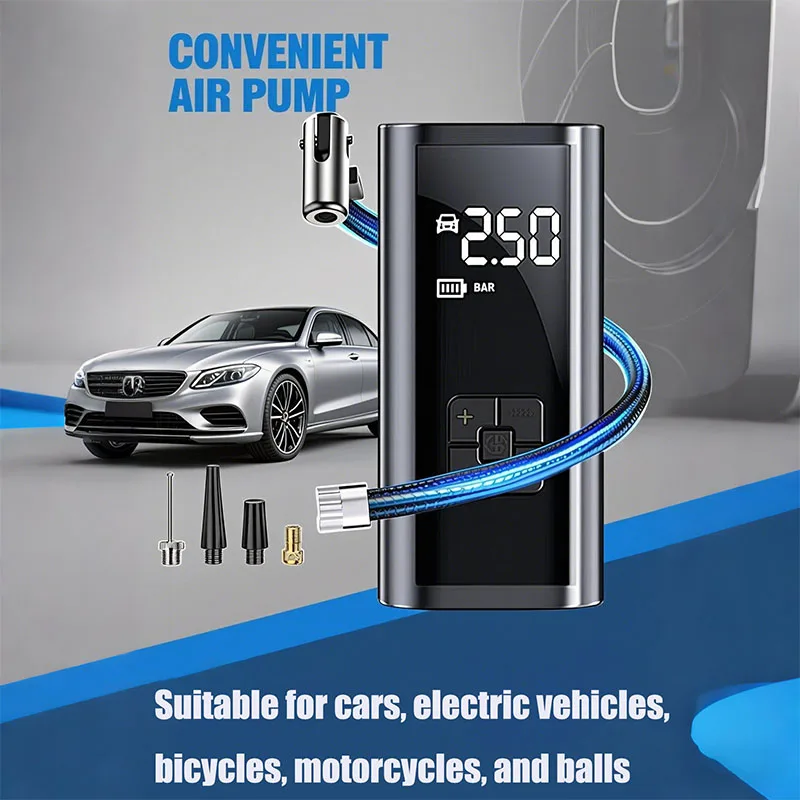 Car Wireless Air Pump offers a wireless design for easy use anywhere, anytime.