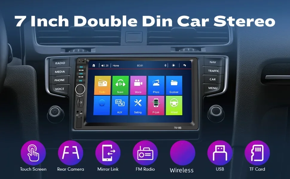 ● FM Radio: Can automatically search channels, Listen to music, news, traffic information.