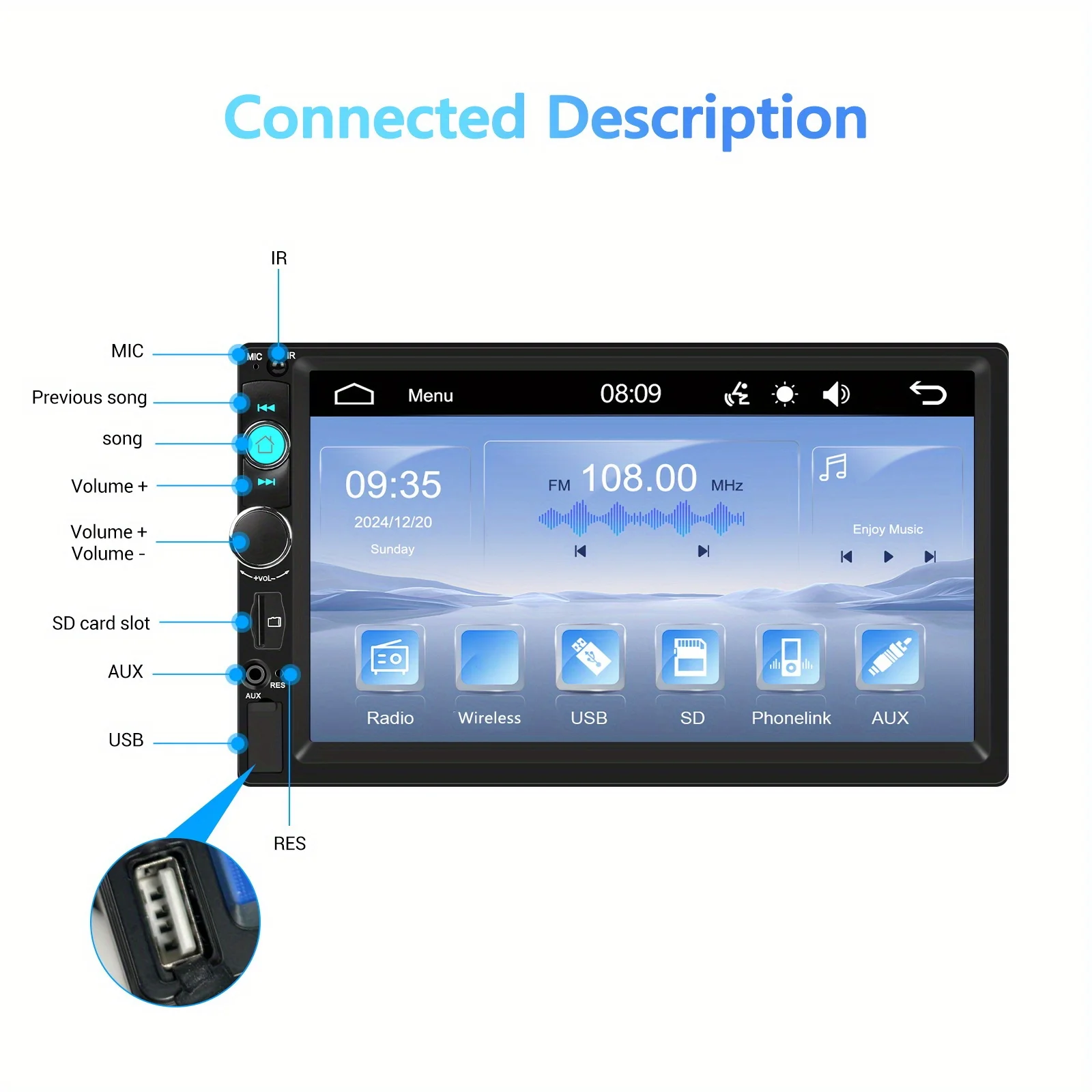 [Multi-function USB]: Support USB input to play music, as well as high-current USB port to charge mobile phones. It allows for charging of devices like phones and tablets during a drive, and also enables easy transmission of audio and video. Whether for powering up or streaming content, it provides great convenience and flexibility in the car, enhancing the driving experience.