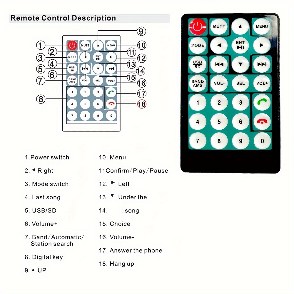 The radio has 18 preset stations with a frequency range of 87.5-108 MHz, and supports USB/SD/MMC card reader. It also supports audio formats like MP3, WMA, APE, FLAC, WAV, and includes folder function, breakpoints, and ID3 Play.