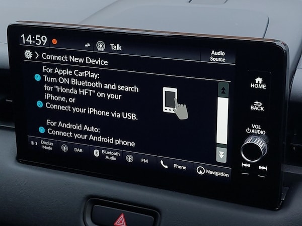 Honda CONNECT with navigation, 9"" touchscreen, AM/FM/DAB/Apple Carplay and android auto, 7"" TFT instrument cluster, Adaptive cruise control, WiFi connectivity, Tailgate, Road departure mitigation, Rear parking sensors and rear view camera, Power meter, Multi info display, Lane keep assist, Lane departure warning, Intelligent speed limiter, Idle stop, Front parking sensors, Forward collision warning, Emergency stop signalling system, eCall emergency system, Bluetooth hands free telephone connection, Adjustable speed limiter, Steering wheel mounted remote controls, 'Shark fin' mobile antenna, Auto folding door mirrors, Auto high beam, Automatic coming home lighting, Automatic rain sensing wipers, Automatic headlights, Exclusive styling in lower bumper non painting black,Fog garnish non paint gloss black,lower door garnish bumper skid garnish non paint silver, LED daytime running lights, Automatic air conditioning, Ambient interior lighting, Heated front seats, Keyless smart entry with push button start