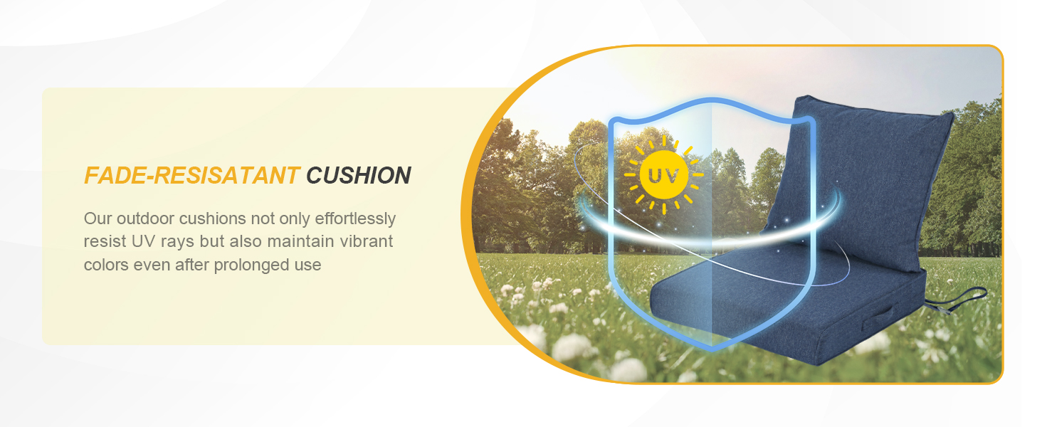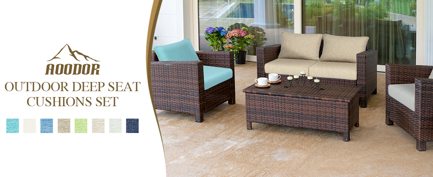 【UPGRATED FABRIC】- Aoodor cushions are made of premium solution-dyed polyester fabric for long-lasting durability and excellent color fastness. Even after long-term exposure to sunlight and outdoor environment, the color remains bright and long-lasting