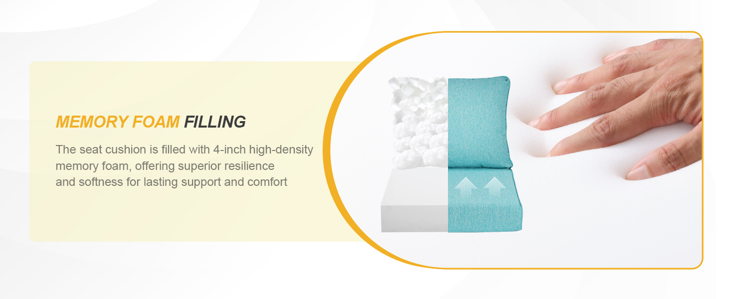【HIGH-QUALITY FILLING】- The seat cushion is filled with 4-inch high-density memory foam for comfort and superior support. The back cushion is filled with a combination of foam and PP cotton, providing exceptional lumbar support