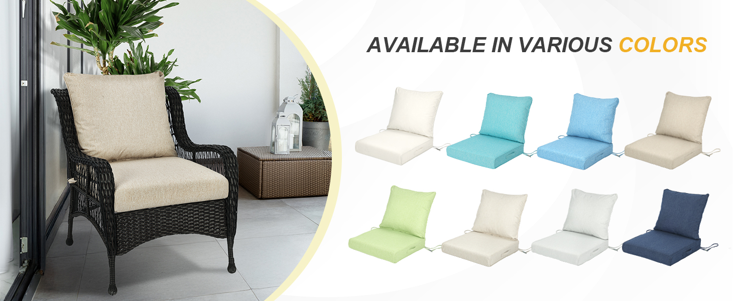 【EXCELLENT WATER-RESISTANT ABILITY】- Our patio cushions feature a TPU-coated inner lining for water-resistant protection, effectively shielding against rain and moisture to keep the interior foam dry. Perfect for gardens, patios, balconies, and other outdoor spaces