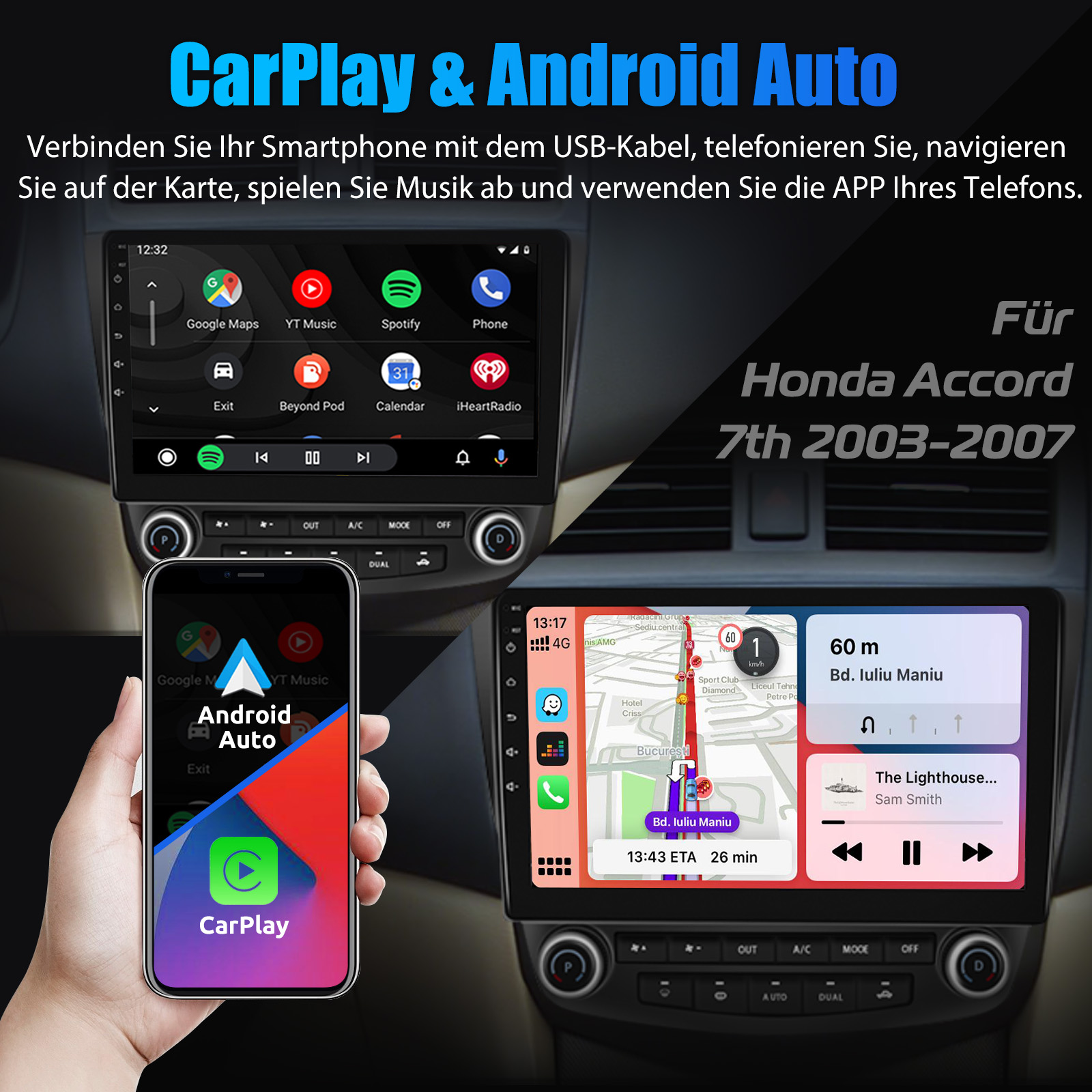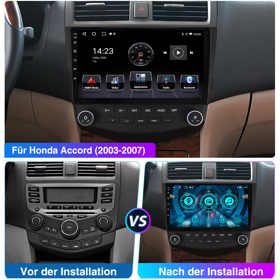 10 Zoll Android 14 Autoradio Für Honda Accord 7 2003-2007: Das Android Autoradio mit 10" 1280* 720 IPS kapazitivem Touchscreen, 1GB RAM und 32GB ROM ermöglicht das Herunterladen Ihrer Lieblings-Apps und -Videos, damit das Autofahren nicht mehr langweilig wird. Kein zusätzlicher Rahmen, kein Kabelwechsel, Plug and Play.