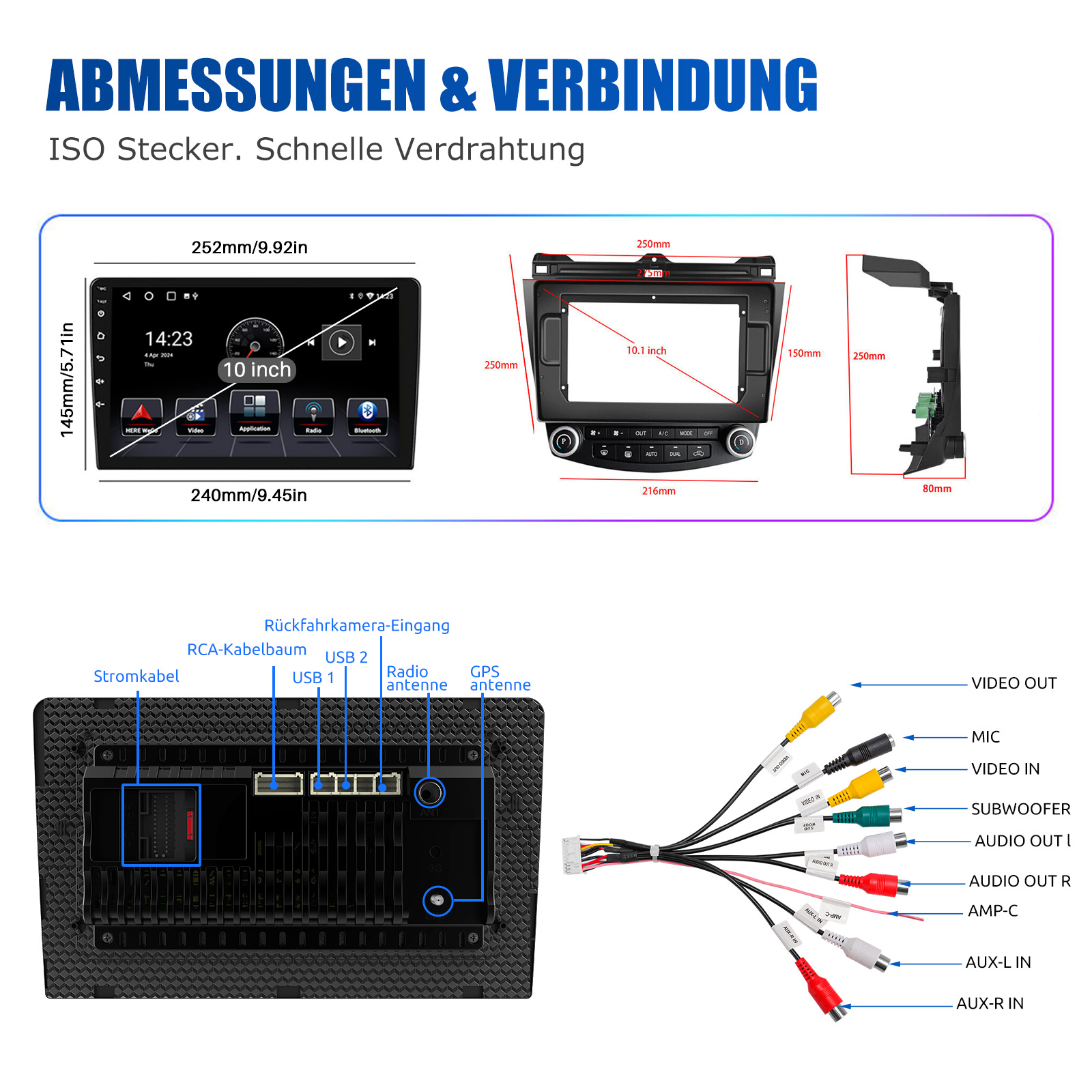 RDS/FM-Radio und Bluetooth und ASP Sound: Unterstützt Bluetooth 4.1, mit integriertem Mikrofon, damit Sie während der Fahrt freihändig telefonieren können. Unterstützt den Zugriff auf das Telefonbuch, die Musikwiedergabeschnittstelle usw. RDS unterstützt. Sie können 18 FM Radiosender speichern. Eingebauter ASP-Chip. Unterstützt 32-Band-EQ-Einstellung, die nach Ihren persönlichen Vorlieben eingestellt werden kann.Der Ihrem Originalsound sehr ähnlich ist.4 x 45W Verstärker, Surround-Sound und Subwoofer-Ausgang.