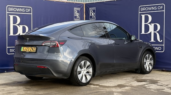 Browns of Richmond are delighted to offer this Tesla Model Y Rear-Wheel Drive – one of the most popular electric vehicles in the world and a true benchmark for EV innovation. Launched in 2022, this RWD variant introduced new battery technology with a 58 kWh Lithium Iron Phosphate pack, delivering a real-world range of around 220 miles.Tesla also added key upgrades to enhance comfort and usability, including heated rear seats, a heated steering wheel, and the latest AMD Ryzen processor, which powers a faster, smoother infotainment experience. This advanced chip also enables Tesla Vision, replacing traditional parking sensors with a cutting-edge 3D visualization system displayed on the main screen. Finished in Midnight Silver Metallic, this Model Y looks stunning. Inside, the cabin offers a premium feel with vegan leather upholstery, minimalist design, and Tesla’s intuitive interface. Almost every function is controlled via the central display, which works seamlessly with Tesla’s app for remote access and smart charging. Navigation is effortless – simply enter your destination and the car calculates your route, charging stops, and arrival battery percentage with precision. Charging costs can be as low as £4.06 on the right tariff, equating to less than 2p per mile. This example retains the remainder of Tesla’s 4-year/50,000-mile warranty, plus its 8-year/120,000-mile battery and drivetrain warranty, ensuring total peace of mind. It has also passed our comprehensive 114-point inspection, confirming it’s ready for its next owner. At Browns of Richmond, we’re more than a dealership – we’re EV specialists with years of real-world experience. Whether you need advice on charging, range, or ownership, we’re here to guide you every step of the way. Contact us today to arrange a test drive or learn more – we’re here to make your transition to electric effortless. The advertised price is plus a £199 fee for the Browns Signature Care Package. Click here for details: .