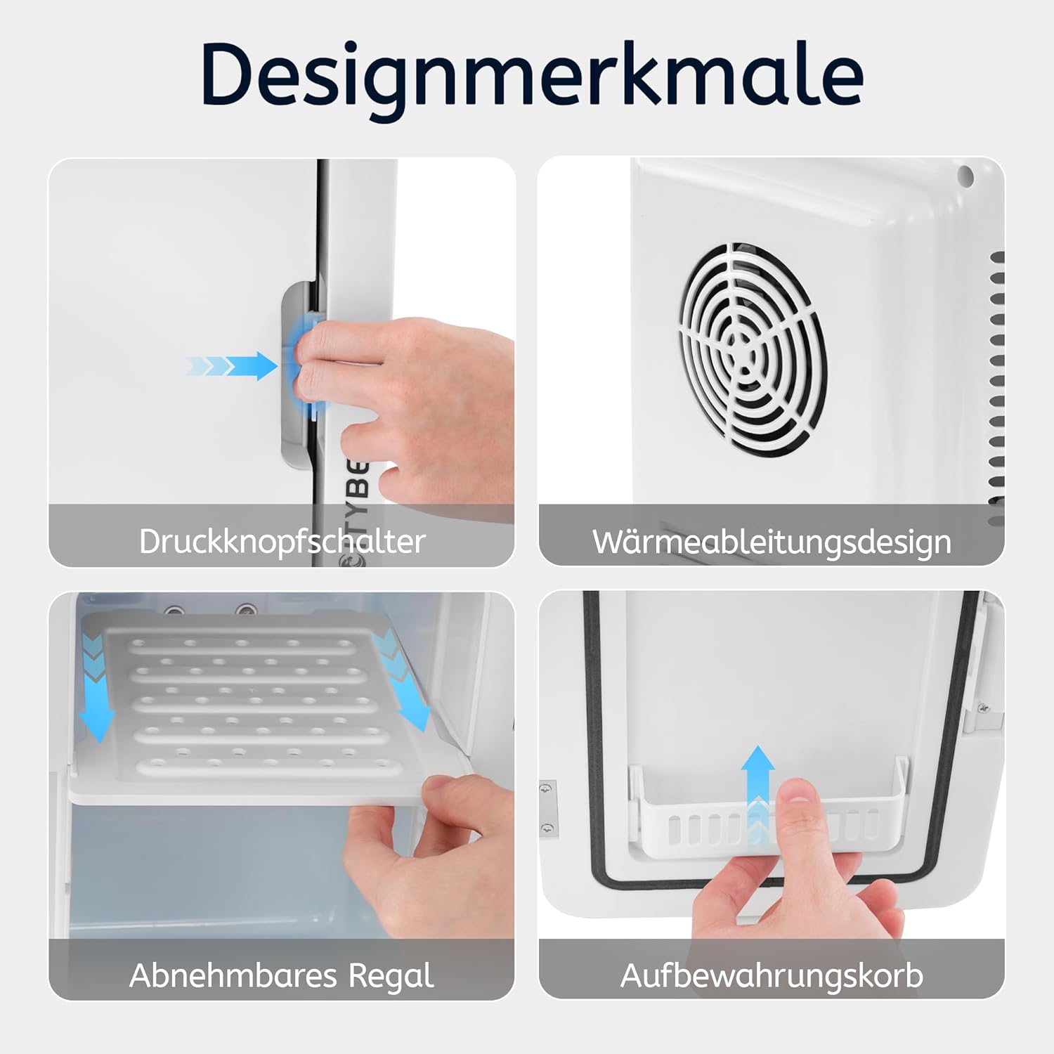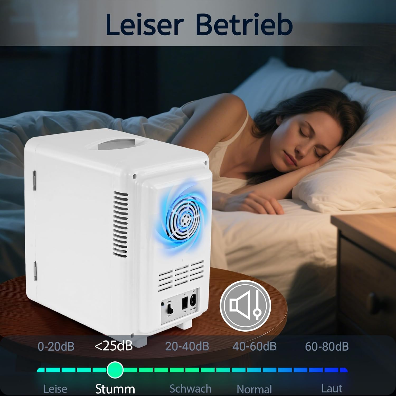 【Ultra-Silent Operation】Dieser Mini-Kühlschrank hält das Geräusch auf dem niedrigsten Niveau (25dB), um Ihren Gebrauch bequemer zu machen, ohne Ihre Arbeit und Ruhe zu stören, und kann in jedem Raum platziert werden, den Sie mit Vertrauen mögen. Dieser leise tragbare Mini-Kühlschrank ist perfekt für Schlafzimmer, Büro und Auto.