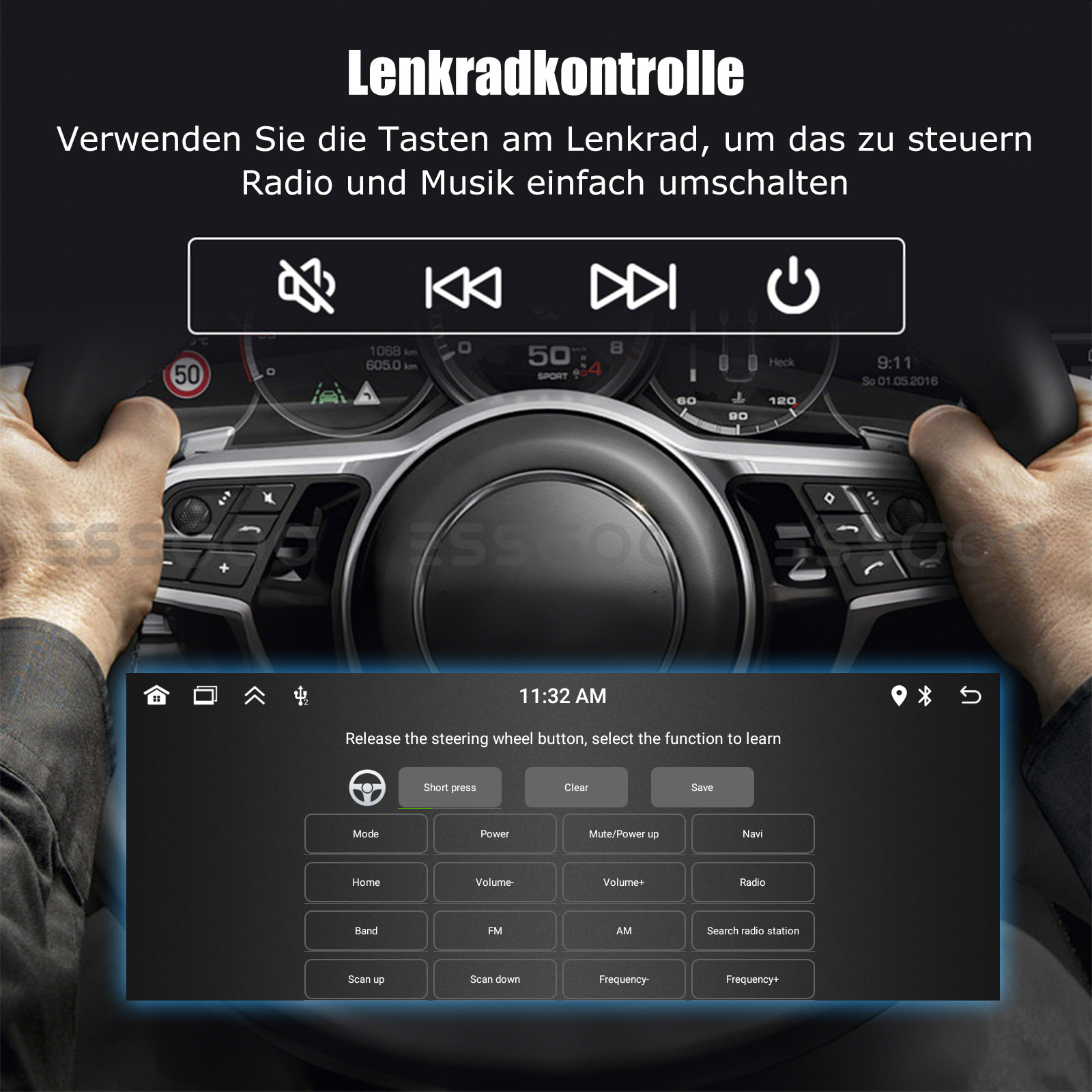 【Lenkradsteuerung】 Das Tastenprogramm der Original-Lenkradfernbedienung des Autos wird unterstützt, was die Steuerung des Autoradios während der Fahrt bequemer macht.