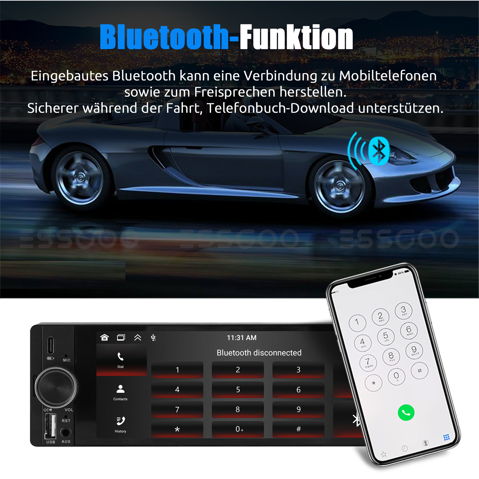 【FM/RDS-Radio und Bluetooth】 Hochwertiges FM-Radio für Wettervorhersagen, Live-Verkehrsinformationen, Nachrichten und mehr, um das Fahren weniger langweilig zu machen. RDS unterstützt. Sie können 18 FM Radiosender speichern. Integriertes Autoradio Bluetooth 5.0, unterstützt Freisprechen, Telefonbuch-Download und Bluetooth-Musikwiedergabe.