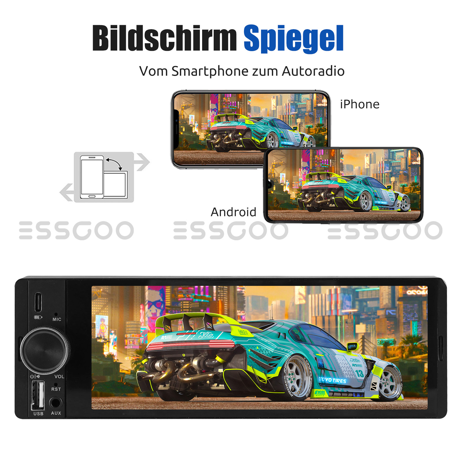 【Phone Mirror Link-Funktion】 Mirror Link über die ursprüngliche USB-Leitung des Telefons kann mit dem integrierten Bildschirm synchronisiert werden. Durch Mirror-Link zeigt das Autoradio den Inhalt von Ihrem Handy-Bildschirm synchron an. Schalten Sie die Navigations-App auf Ihrem Telefon ein, Sie können die Navigationsfunktion in Ihrem Auto während der Fahrt nutzen.