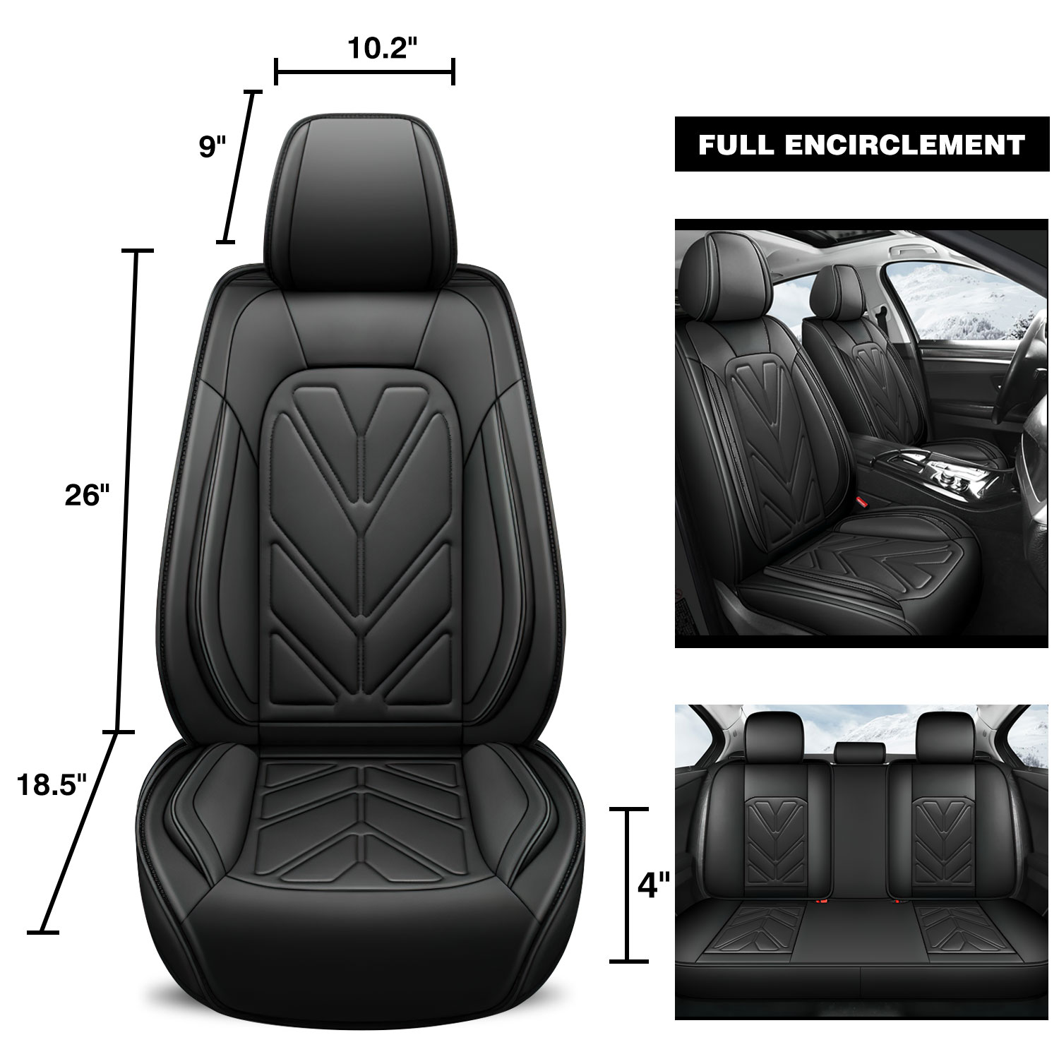 【UNIVERSAL FIT】 Each pack comes with 2 front seat covers and 2 rear seat covers, which are compatible with most Cars, SUV, Truck and Pick-up. You can easily install a custom new look on your seats without any hassles.