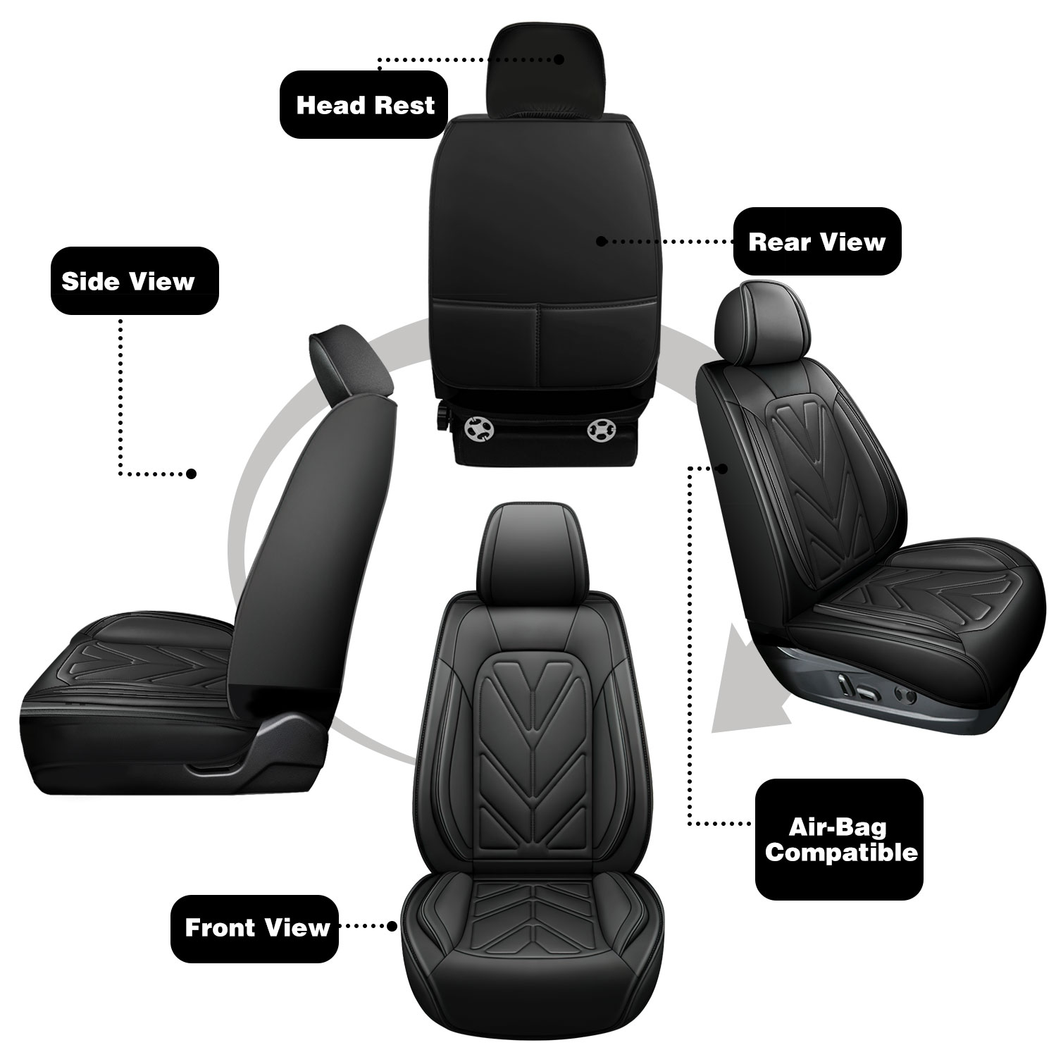 【Airbag Compatible】Special stitching design allows full seat function and control, includes folding, moving, sliding, armrests, airbags and so on. When the car encounters a huge impact, the airbag can wok normally.