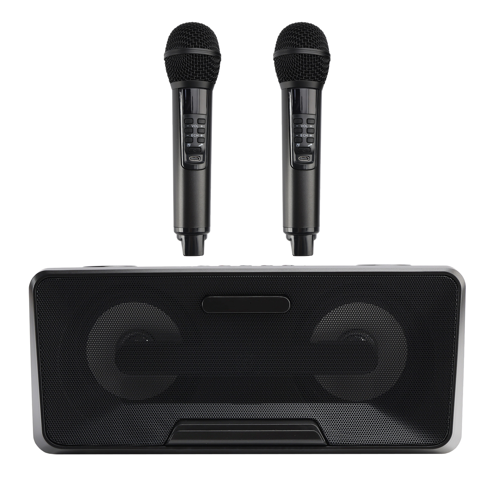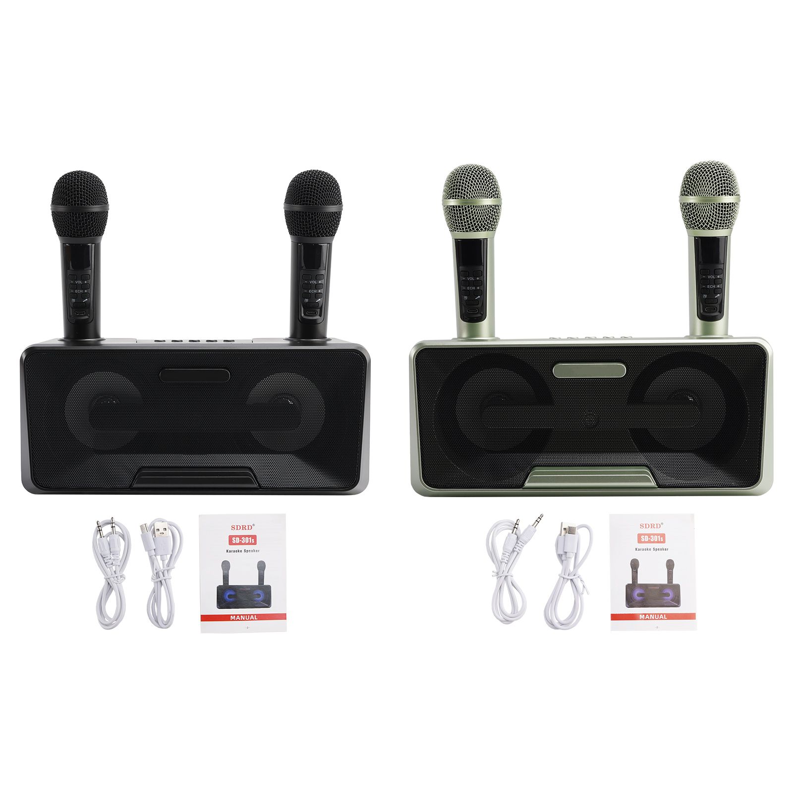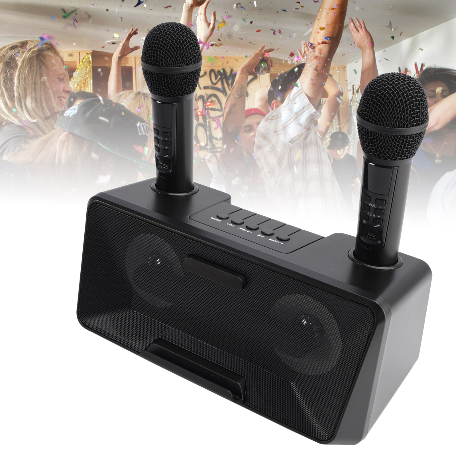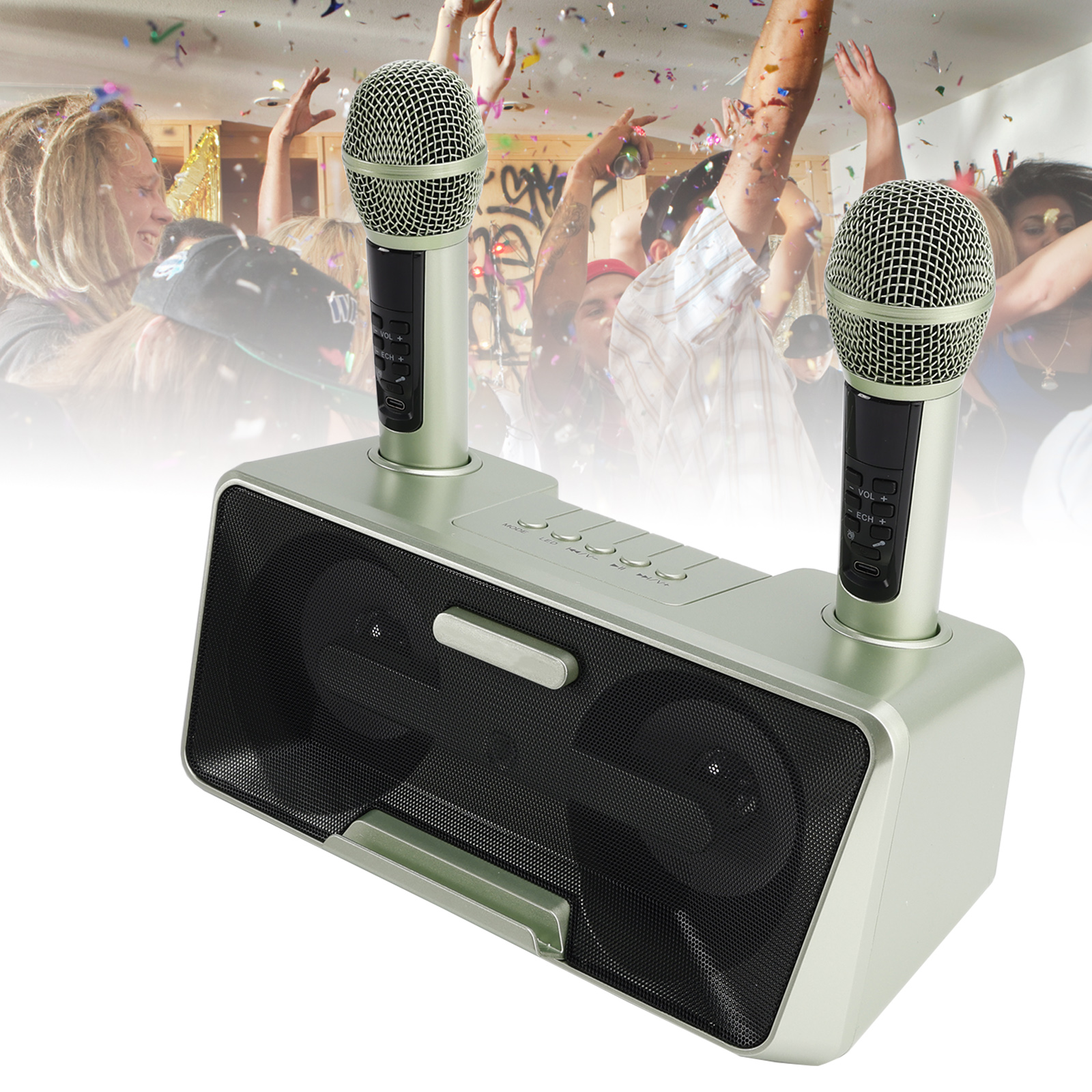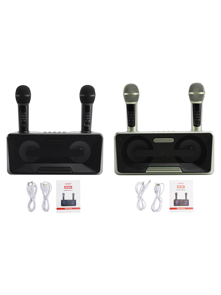 Design concept: details that transform meaning into form, innate streamlined style. Dual microphone design, no need to worry about microphone tyrants grabbing the microphone, so you can sing whenever you want. Dual microphone wireless karaoke, wireless Bluetooth smart connection, high battery life, HIFL sound effect.