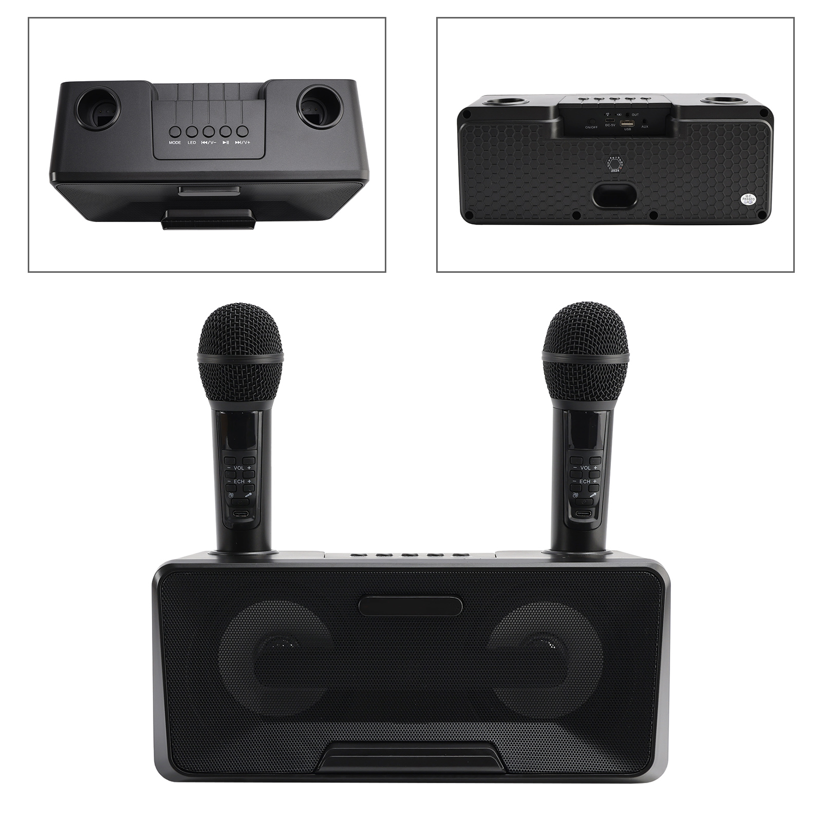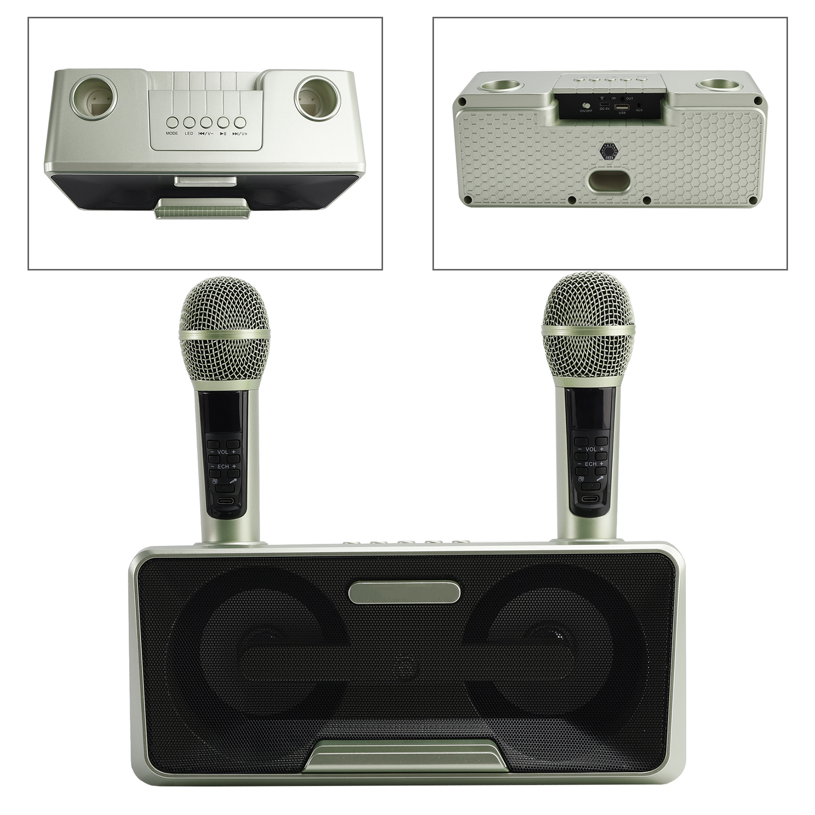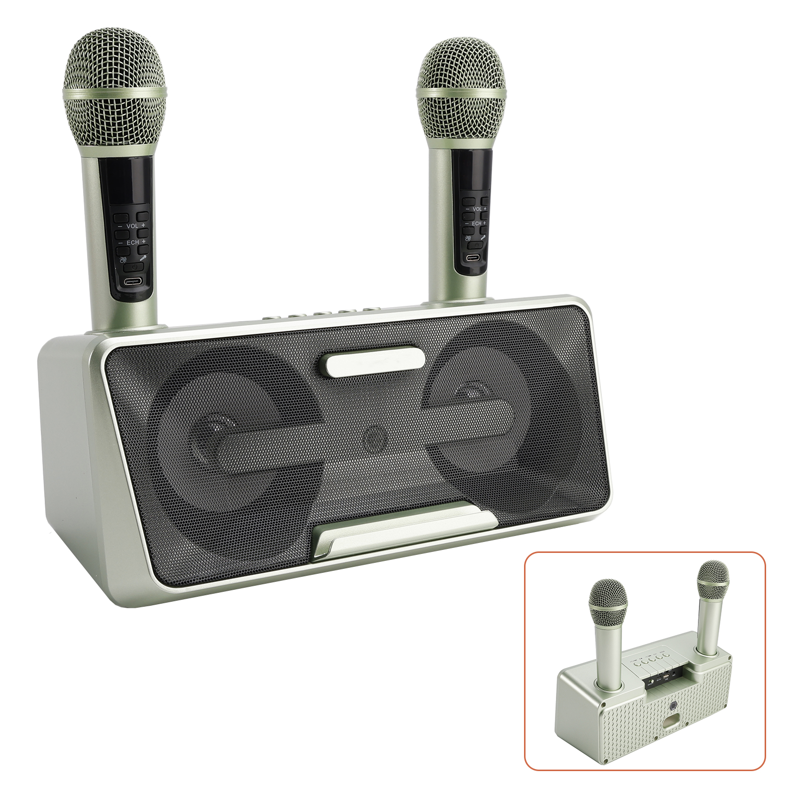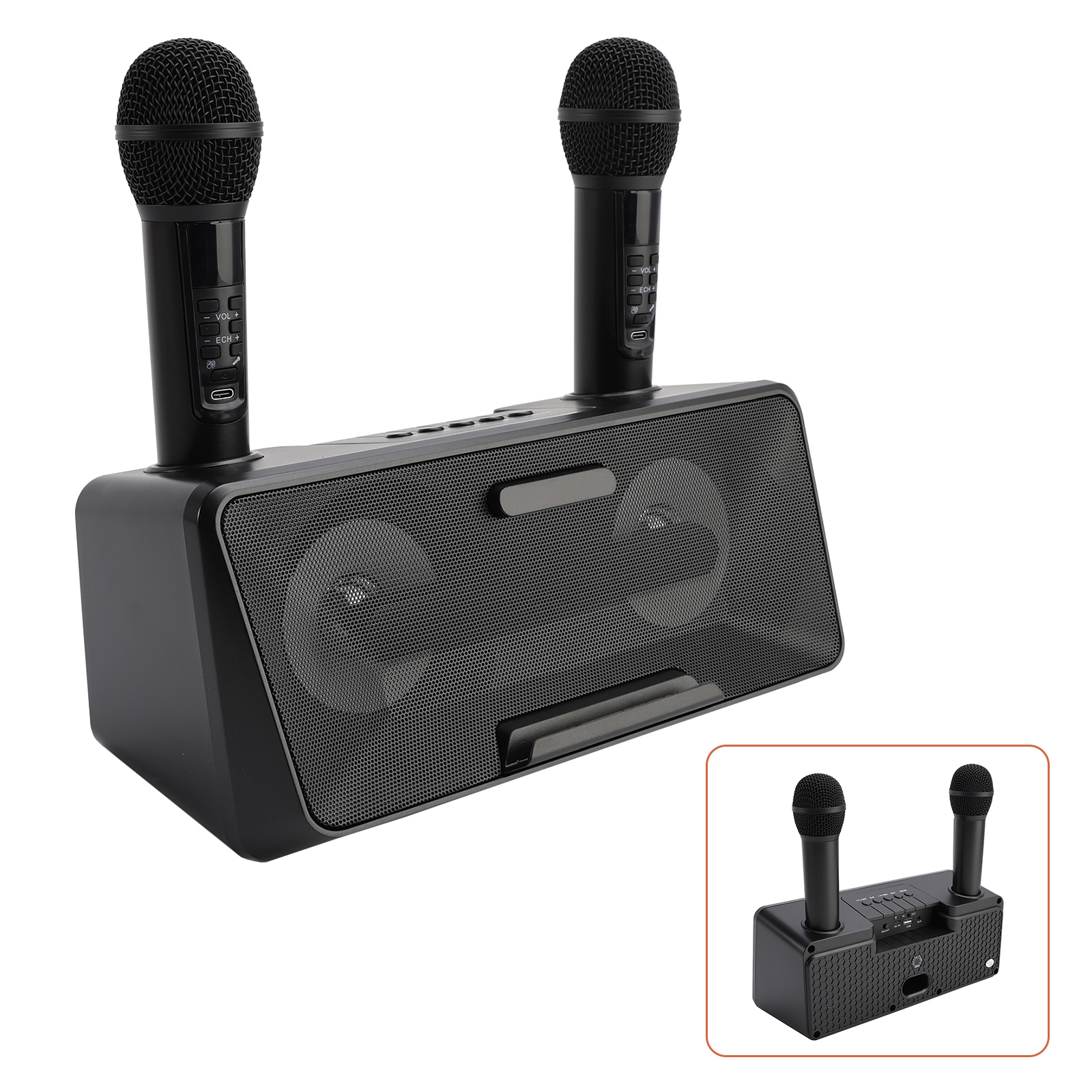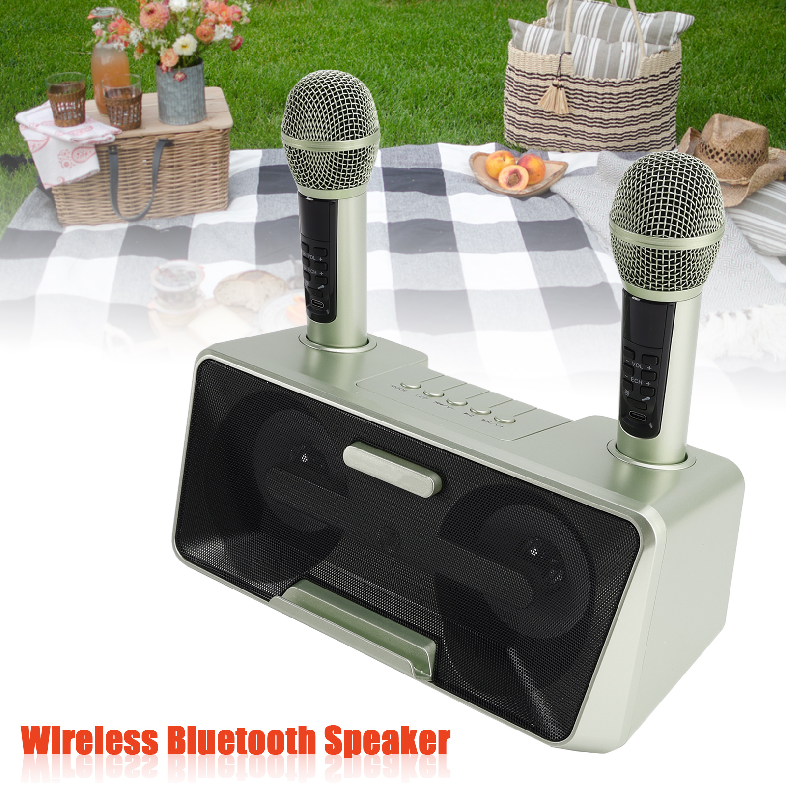 Design concept: details that transform meaning into form, innate streamlined style. Dual microphone design, no need to worry about microphone tyrants grabbing the microphone, so you can sing whenever you want. Dual microphone wireless karaoke, wireless Bluetooth smart connection, high battery life, HIFL sound effect.