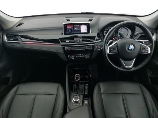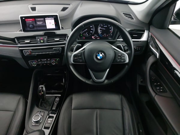 Ambient temperature display, Apple CarPlay, Park assist system, Front/rear park distance control (PDC), Automatic tailgate opening, Operation by iDrive with direct selection buttons and 8 programmable buttons, Real time traffic information, Personal Profile - automatic lock when driving away selectable, Drive performance control with ECO PRO comfort + sport mode, Performance Control, Standard suspension, Stop/start function, Seven speed sport dual clutch automatic transmission (DCT), DAB Digital radio, Aero curtain, Automatically dimming rear view mirror, Electric windows - front and rear, with open/close fingertip control, anti-trap facility and comfort closing, Electrically adjustable door mirrors with aspheric on driver side, convex on passenger side with integrated indicators, Exterior mirrors - electrically folding with anti-dazzle, Follow me home headlights, Heated door mirrors, Heated windscreen washer jets, LED direction indicator lights in headlight eyebrow, Rain sensor including auto headlights activation, Welcome lighting, 40:20:40 split folding rear bench seat, Child seat ISOFIX attachment for two outer rear seats and front passenger seat with anchorage points, Dakota leather upholstery with perforation and contrast stitching, Dual zone automatic air conditioning, Front centre interior light over interior mirror and rear centre automatic interior light when door is opened/ignition switched off or via remote key, Extended storage package - X1, Extended lights pack - X1, Audio/visual collision warning system, Cornering brake control (CBC), Crash Sensor - activates hazard/interior lighting + unlocks doors, Driver/front passenger side airbags, Electronic parking brake, Hill start assist, Side impact protection, Start/stop button with comfort go keyless engine start and auto start stop deactivation button, Remote control Thatcham category 1 alarm, Engine immobiliser