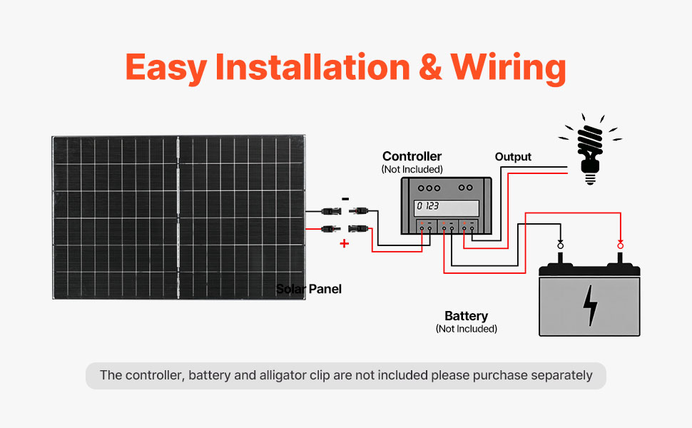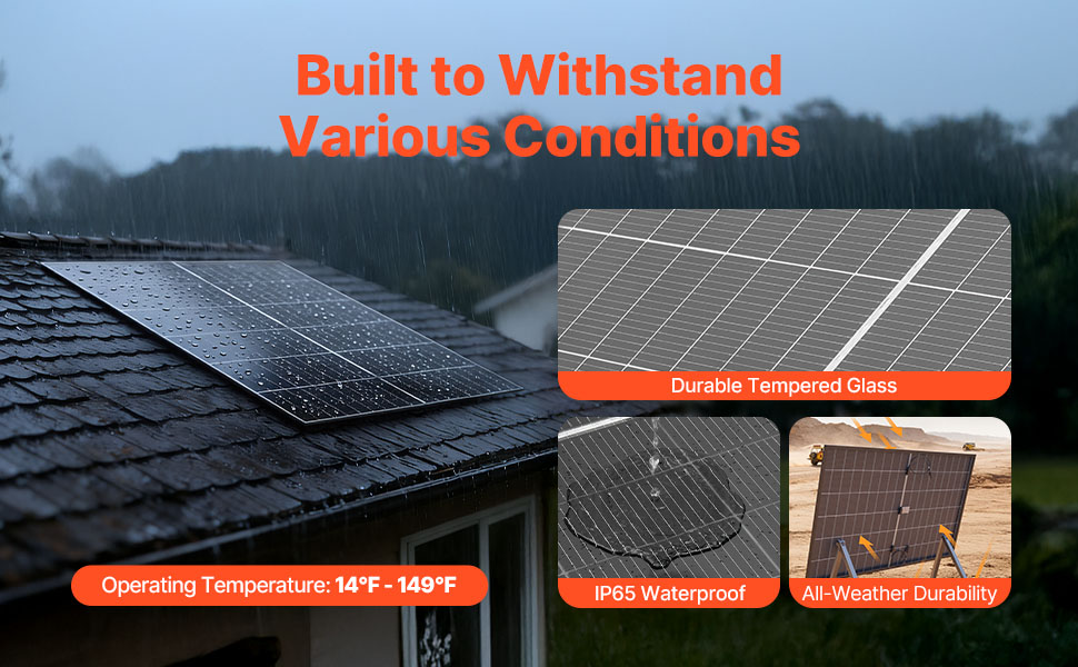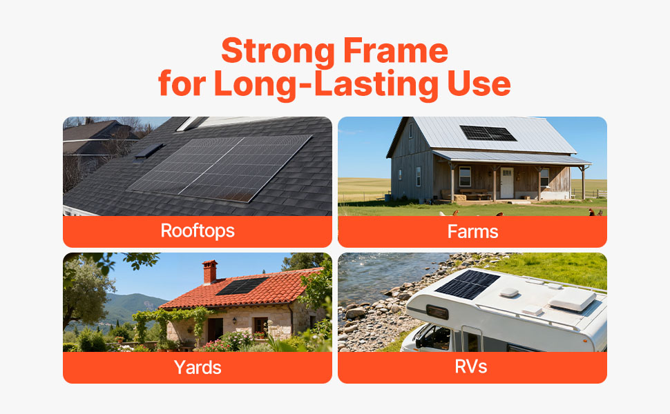 Ce panneau solaire est doté d'un cadre robuste, ce qui le rend idéal pour une installation durable sur les toits plats, les toits de maisons, les fermes, les jardins ou les camping-cars, assurant une alimentation électrique constante et fiable. (Supports de fixation non inclus)
