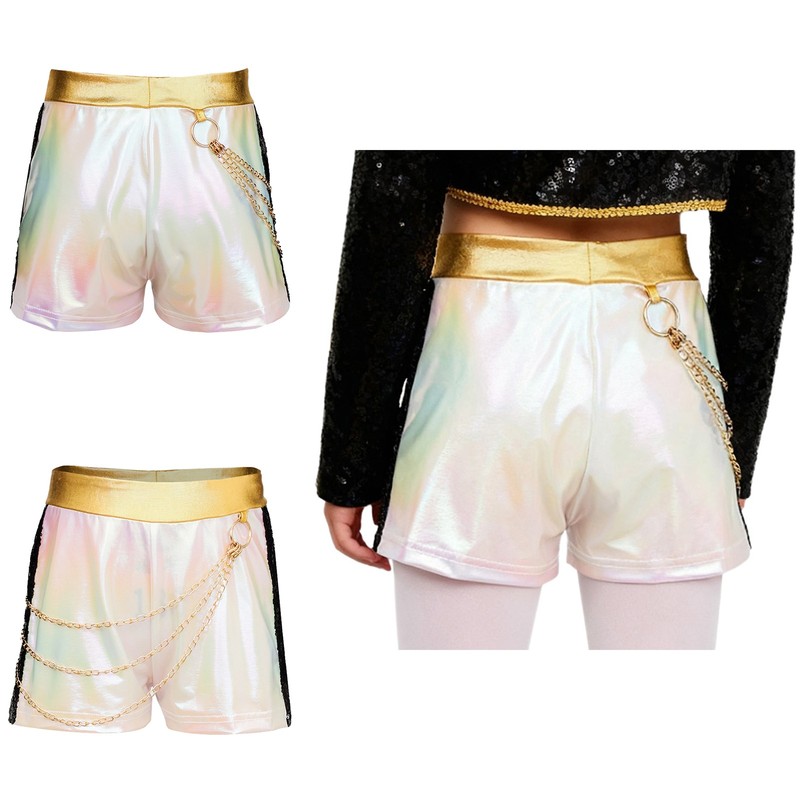 The chains adorning the shorts bring a cool and edgy style, suitable for a singer cosplay theme and adding a unique charm.