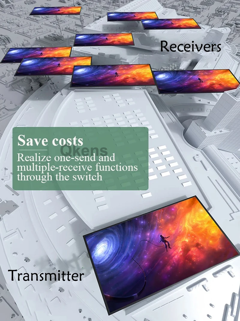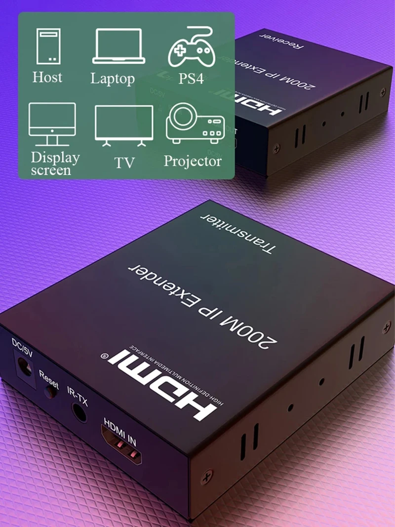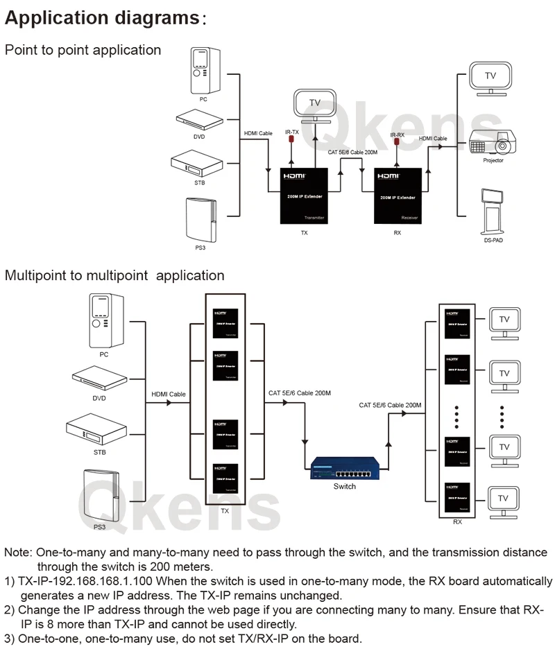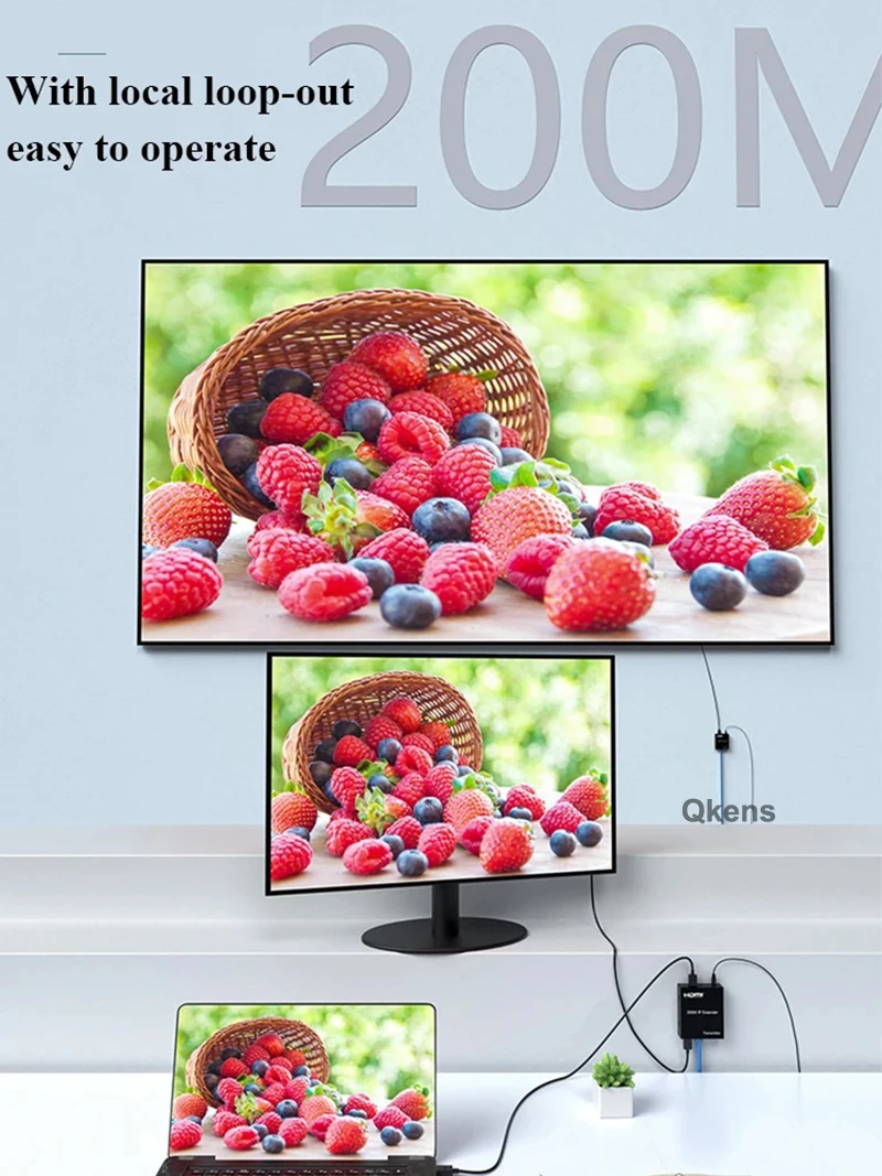 This Qkens 200M HDMI IP Extender is based on TCP/IP standard. It transmits your HD display with the high