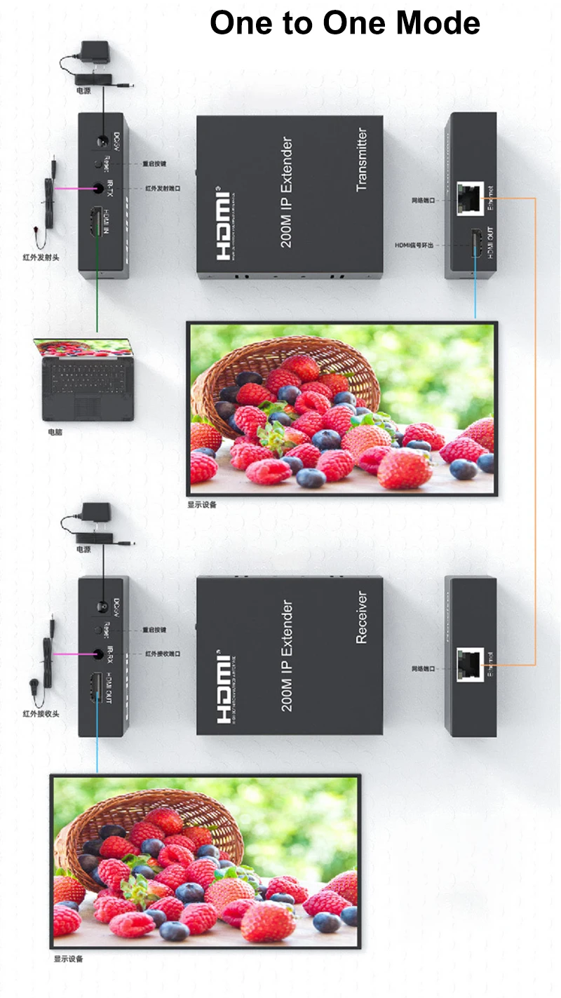 At the same time, it's convenient to transmit HDMI audio and video source by point-to-point mode,
