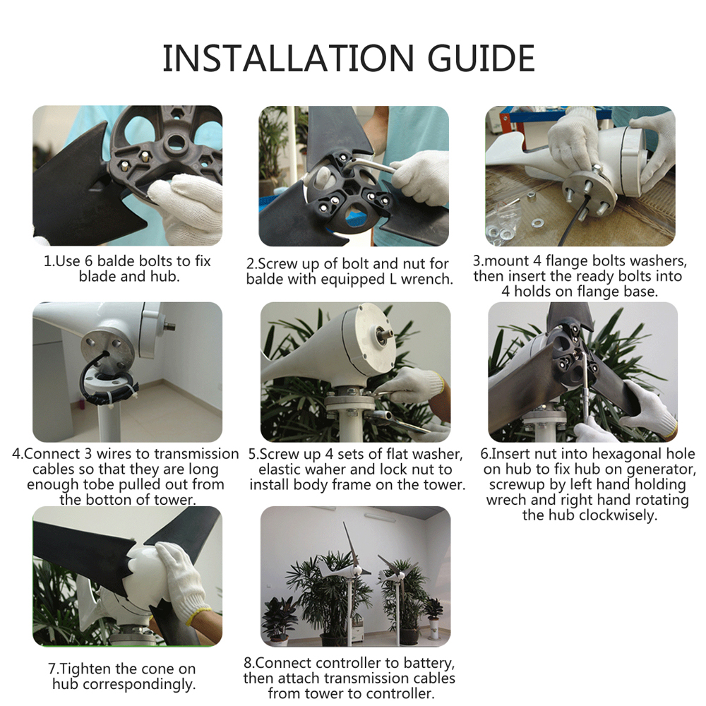 5.The wind wheel blades are made of nylon fiber, coupled with the optimization of the aerodynamic shape design and structural design, high wind energy utilization factor, an increase of annual power generation.