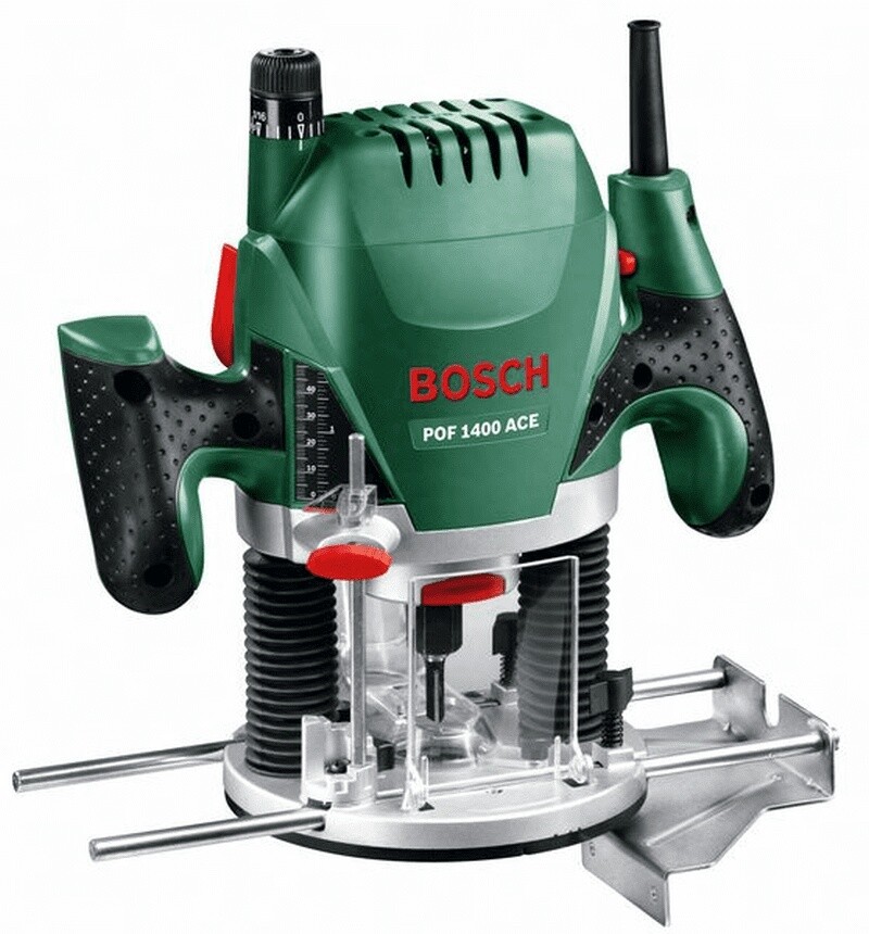 Enrutador POF 1200 AE. Potente y preciso para trabajos creativos con madera. Preselección de la velocidad en función del material mediante electrónica Bosch con rueda de ajuste e interruptor del acelerador. Cambios de fresa sencillos y rápidos gracias al bloqueo del husillo integrado. Sistema SDS de Bosch: permite una inserción sencilla y sin herramientas de la funda de copia. Potente motor de 1.200 vatios para tareas exigentes en allen tipo de madera. Conexión para aspiración de polvo: para trabajar sin polvo. La capota protectora transparente protege contra virutas voladoras. Excelente diseño ergonómico con agarre suave para un trabajo cómodo y seguro. Adaptador de aspiración (2 600 499 077), llave de boca (1 609 203 V40), casquillo copiador (2 609 200 138), cortador de ranuras (8 mm de diámetro) (2 608 628 381), tope paralelo (1 609 203 M85), pinzas (3 piezas), pasador de centrado (2 609 200 310)