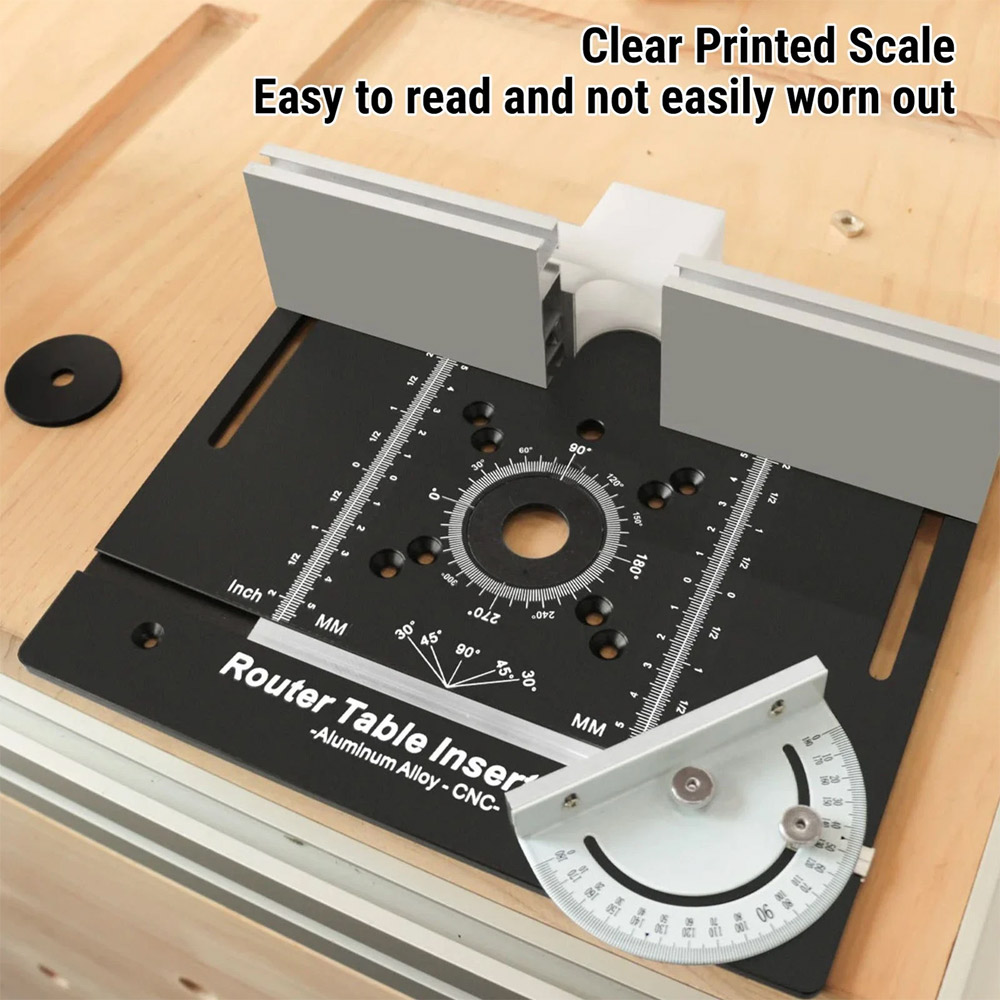 2. [Clear Scale] The router insert plate features clear printed scales, easy to read and hard-wearing, facilitating accurate measurements and adjustments during machining.