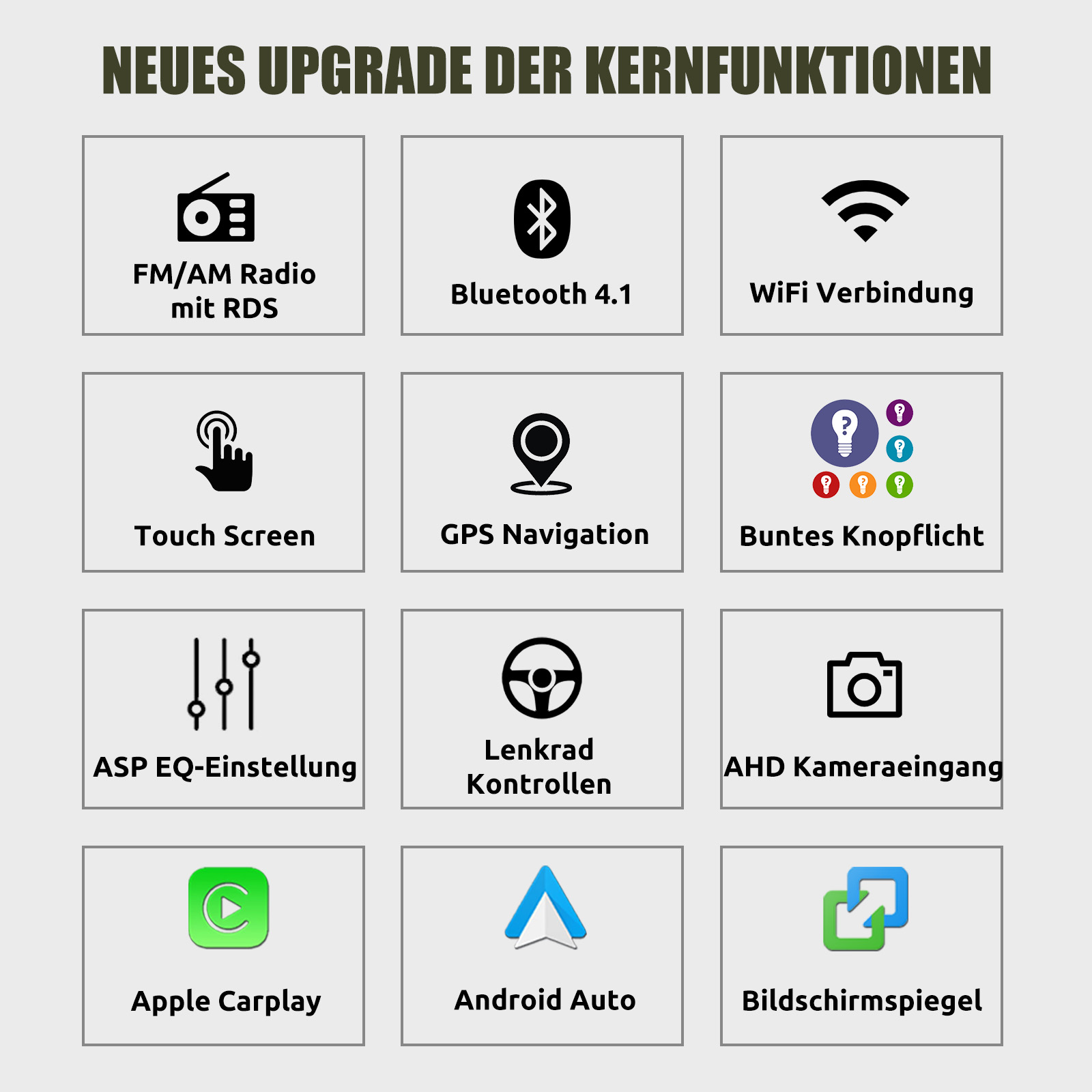 Wireless Carplay und Android Auto: Tauchen Sie ein in ein nahtloses und benutzerfreundliches Infotainment-Erlebnis mit Apple CarPlay & Android Auto. Verbinden Sie Ihr iPhone mit Apple CarPlay oder Ihr Android-Smartphone mit Android Auto und greifen Sie sicher auf Anrufe, Textnachrichten, Navigation, Musik und vieles mehr zu. Mit intuitiver Bedienung über den Touchscreen oder Sprachsteuerung haben Sie alle Funktionen bequem zur Hand, während Sie sicher am Steuer bleiben. Nutzen Sie Ihre bevorzugten Apps und bleiben Sie jederzeit verbunden, während Sie den Blick auf die Straße gerichtet haben. Machen Sie Ihr Fahrzeug zu einem erweiterten Hub für Ihre mobilen Geräte und erleben Sie eine neue Dimension des Infotainments.