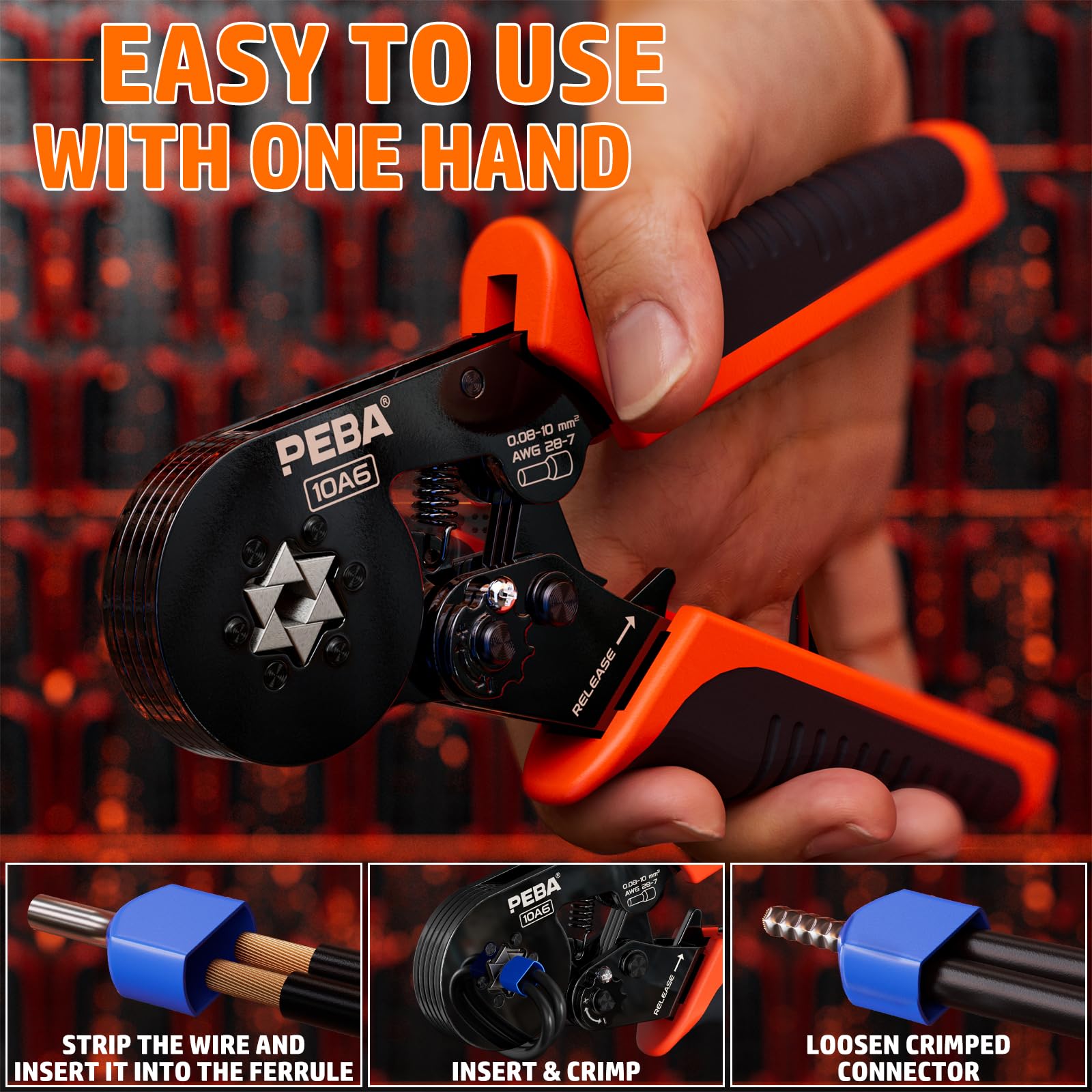 Crimpatura di precisione: Qualità di crimpatura costantemente elevata grazie alla funzione a cricchetto autoregolante e al grilletto a sgancio rapido, lo strumento PEBA Ferrule Crimper richiede meno tempo e fatica