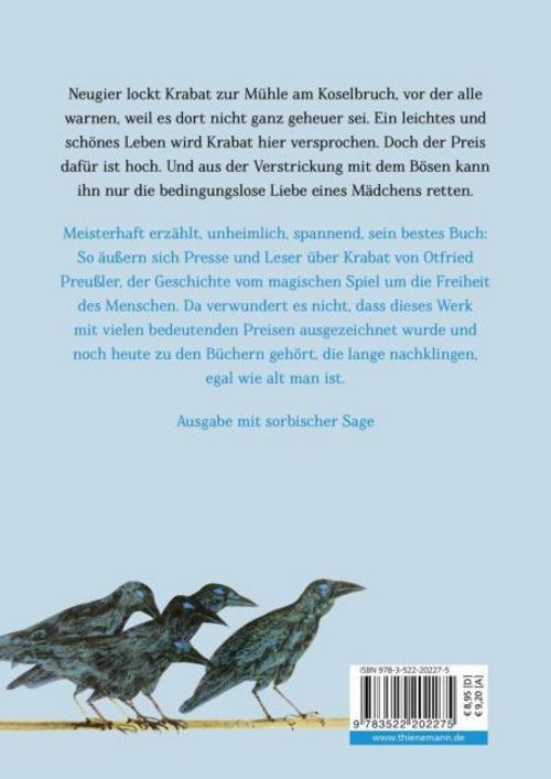 Die auf einer alten Sage beruhende Geschichte ist die Erzählung vom magischen Spiel um die Freiheit des Menschen, um Gerechtigkeit und Liebe. Krabat gehört zu den Klassikern der Kinder- und Jugendliteratur und ist mehrfach ausgezeichnet worden, unter anderem mit dem Deutschen Jugendliteraturpreis.