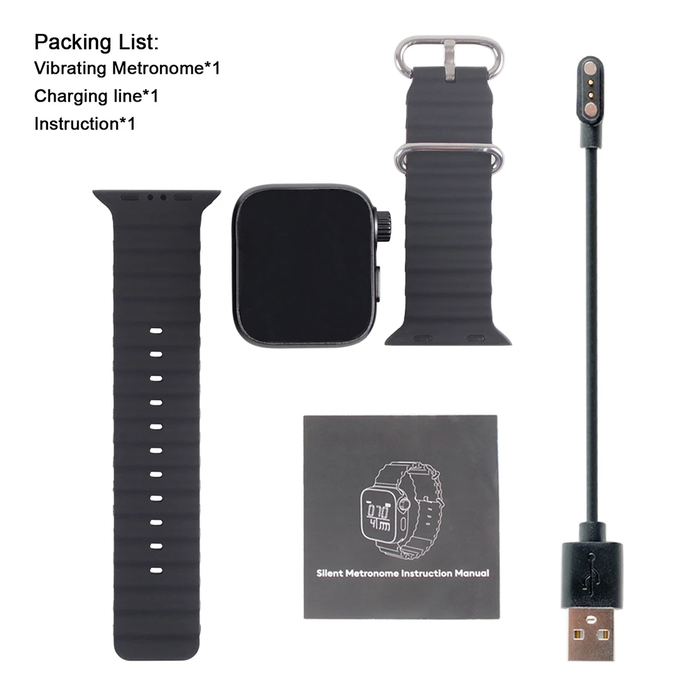Wearable Vibrating Metronome for Sport Running Metronome Watch Adjustable Strap Beat Counting Watch for Guitar Piano Drum and All Instruments Features: 1.Innovative Sports Watch Design: With a rhythmic pulse for your skin, this wearable vibrating metronome enhances body perception, making it easier to develop your rhythm habits efficiently. Ideal for both music practice and fitness routines. 2.Silent Vibration Mode: Experience an undisturbed environment with our vibration and silent mode, ensuring no noise pollution while using in public spaces and during personal practice sessions. 3.Dual Functionality: Perfectly designed for both music and sports, this versatile wearable vibrating metronome supports rhythm practice for musicians and tracks performance metrics for runners and athletes seamlessly. 4.Sturdy Construction: Crafted with an ABS body and detachable silicone strap for comfort and durability, this metronome watch is easily adjustable and suitable for all age groups. 5.Energy Efficient Design: Our metronome watch has low power auto-sleep feature, offering over 5 hours of continuous use and a remarkable standby time exceeding one month on a single charge. Specification: Origin: Mainland China Wearable Vibrating Metronome for Sport Running Metronome Watch Adjustable Strap Beat Counting Watch for Guitar Piano Drum and All Instruments Strap size: 23.6cm*2.3 Dial size: 4.3*3.7cm Charging: 5V (with charging cable) Charging time: 1.5 hours Battery: 3.7V 250ma Current: 50mA rms Endurance: more than 5 hours Beat speed: 40-240 bpm Note: ![]() 1 X Wearable Vibrating Metronome 1 X Magnetic Charging Cable |