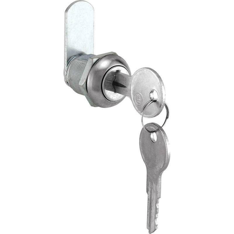 This drawer and cabinet lock is constructed of die cast and steel components and it comes in a stainless steel finish. This lock features a 3/4 inch outside cylinder diameter with a 5/8 inch length that will accommodate up to 5/16 inch thick panels. This drawer and cabinet lock can be mounted to metal or wood door and drawer panels and it comes complete with 3 cams, a trim collar, 2 reversible rotation washers, 2 keys and fasteners. This model number is keyed different and it uses a Yale Y-11 keyway. Others have used these to replace damaged locks in work truck tool boxes and gumball machines.