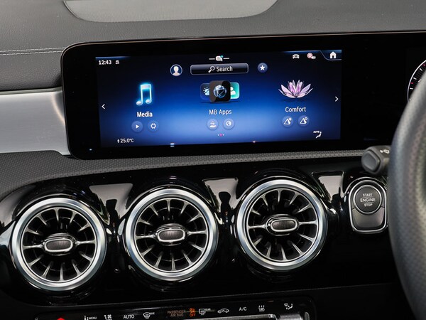 Mercedes-Benz Approved Used, Mercedes Benz sound system (100 W) with 6 speakers, Blind spot assist, Smartphone integration with Apple CarPlay and Android auto, Wireless charging in the front centre console, Charging system - AC charging system rated at 11kW, MBUX multimedia system, LED high performance headlamps with integrated LED daytime running lights and adaptive highbeam assist, Privacy glass with dark tinting on rear side windows and rear window, 3 twin spoke flattened multifunction steering wheel in nappa leather - horizontal twin spoke in high gloss black, vertical twin spoke in silver chrome, Air conditioning - One zone THERMATIC automatic climate control with automatically controlled air distribution, Parking pack with reversing camera - CLA, Keyless go comfort pack - CLA