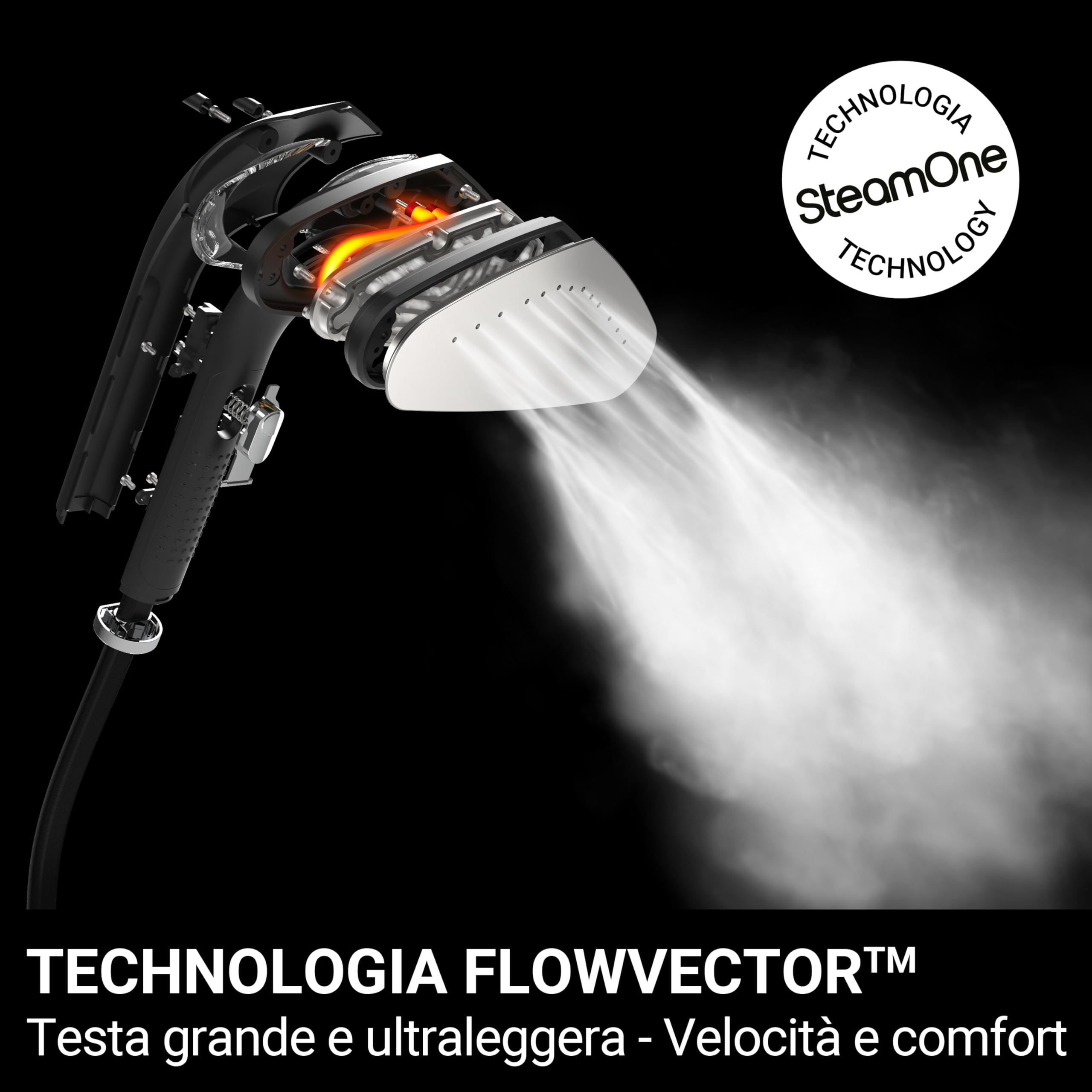 RISULTATI PROFESSIONALI: Steamcube utilizza la tecnologia FlowVectorTM a 10 bar, che spinge il vapore a 125 g/min attraverso una testina di diffusione allargata per una maggiore rapidità e comfort. Vapore su richiesta grazie a un ampio serbatoio da 2,5 l e un grilletto di utilizzo. Potete prendervi cura di tutti i vostri capi senza rischio di bruciarli o lucidarli.