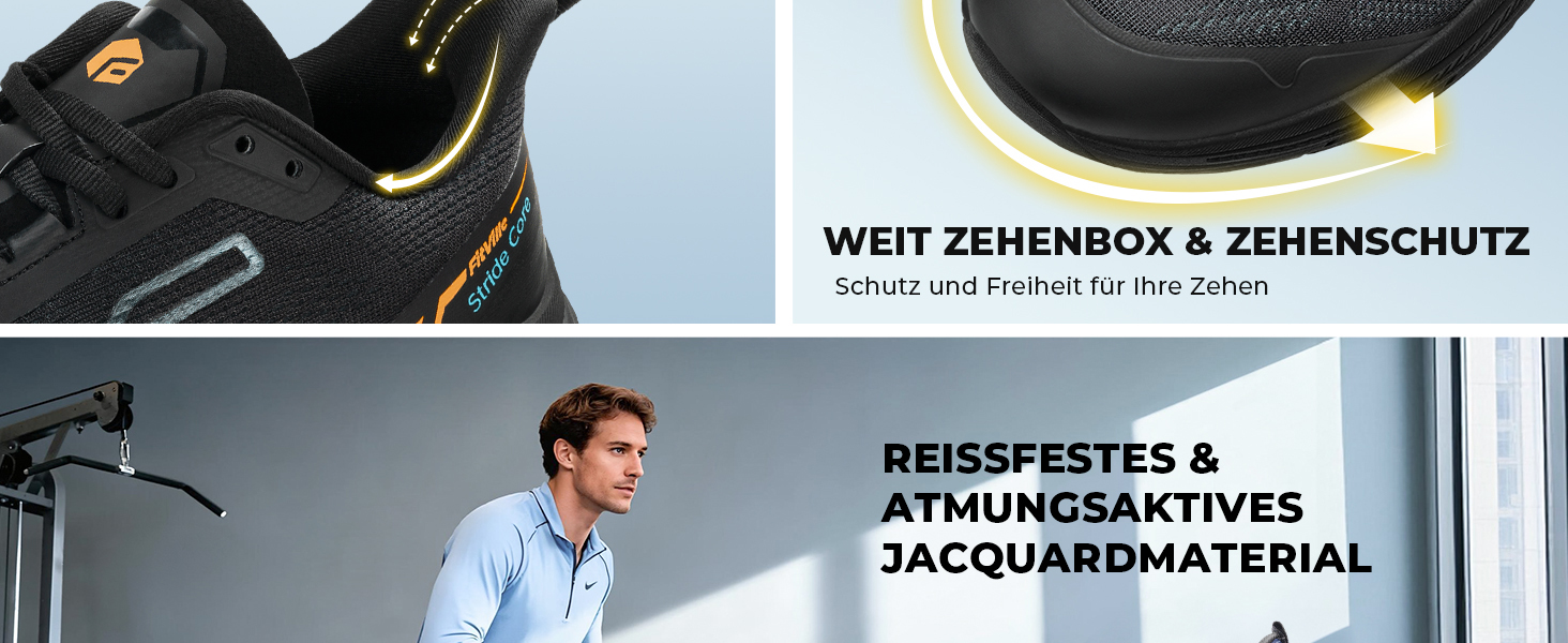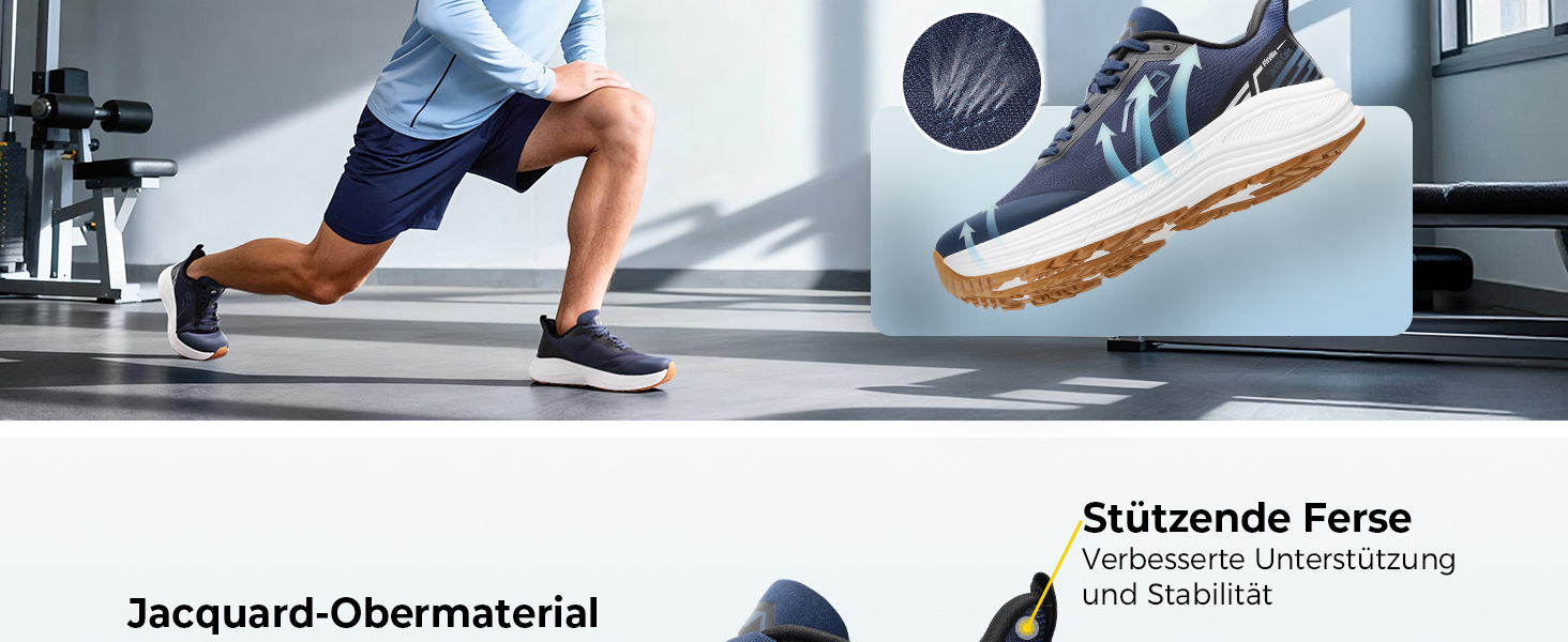 【Weite Zehenbox】Dieser sneaker herren verfügt über einen geräumigen Zehenbereich und ein niedrig geschnittenes Design, um Druckstellen zu minimieren und ein Zusammendrücken zu verhindern. So können sich Ihre Zehen frei ausbreiten und sorgen für außergewöhnlichen Komfort bei jedem Schritt.