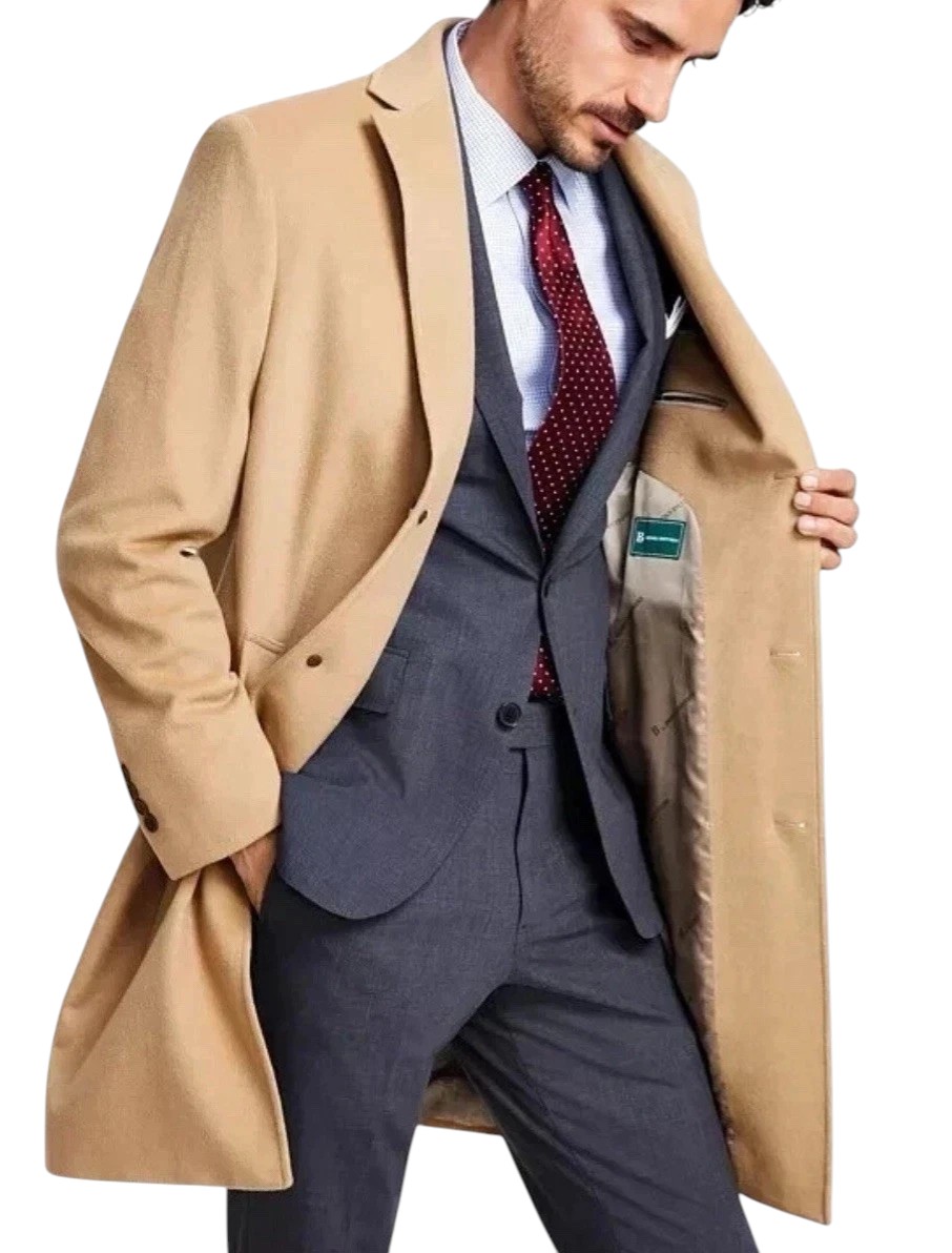 Brooks Brothers Mens Regular Fit Wool Overcoat Coat 44L Camel Tan