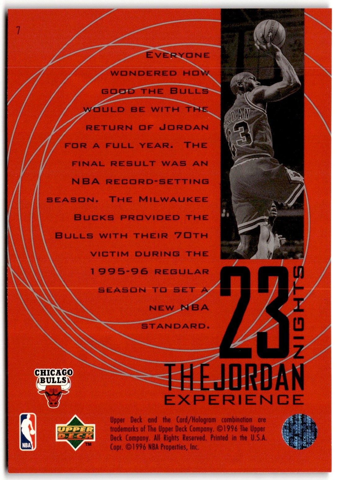 | Michael Jordan 1996-97 Upper Deck The Jordan Experience Jumbo #7 Chicago Bulls | ||||||||||||||||